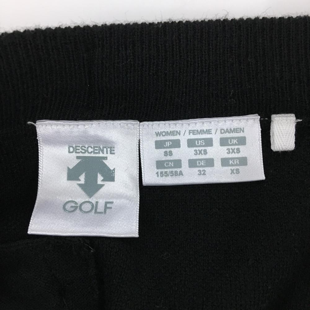 【超美品】デサントゴルフ ニットスカート 黒×白 ロゴ ウール混 中田英寿 レディース SS ゴルフウェア DESCENTE