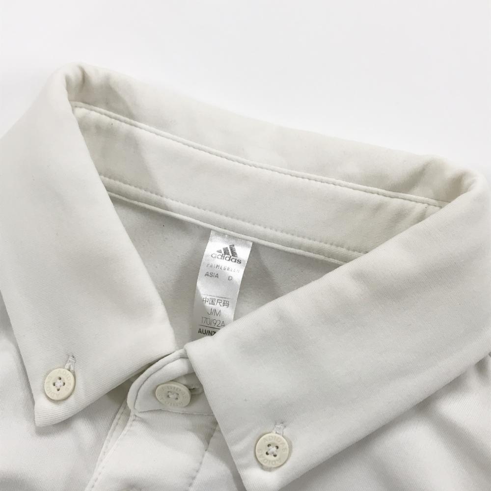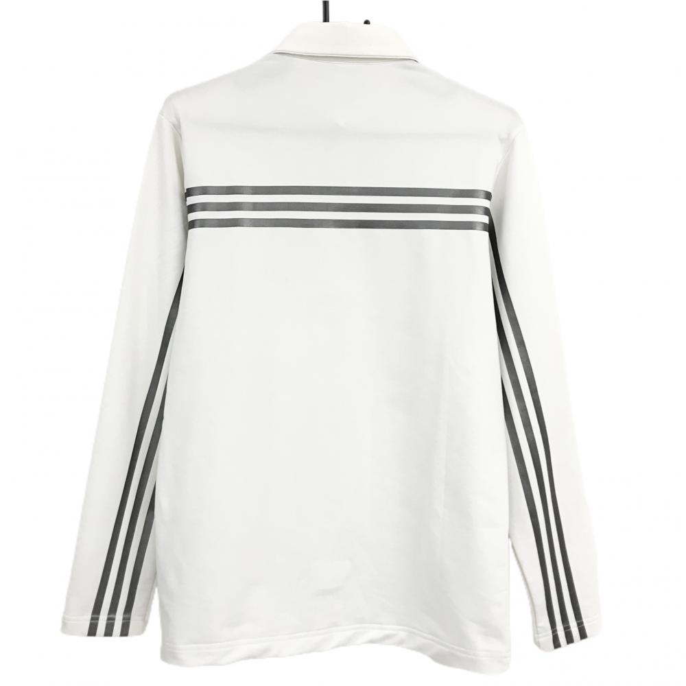 【美品】アディダス 長袖ポロシャツ 白×黒 背面3ライン ボタンダウン ロゴプリント メンズ M ゴルフウェア adidas