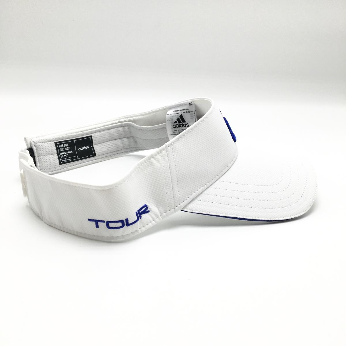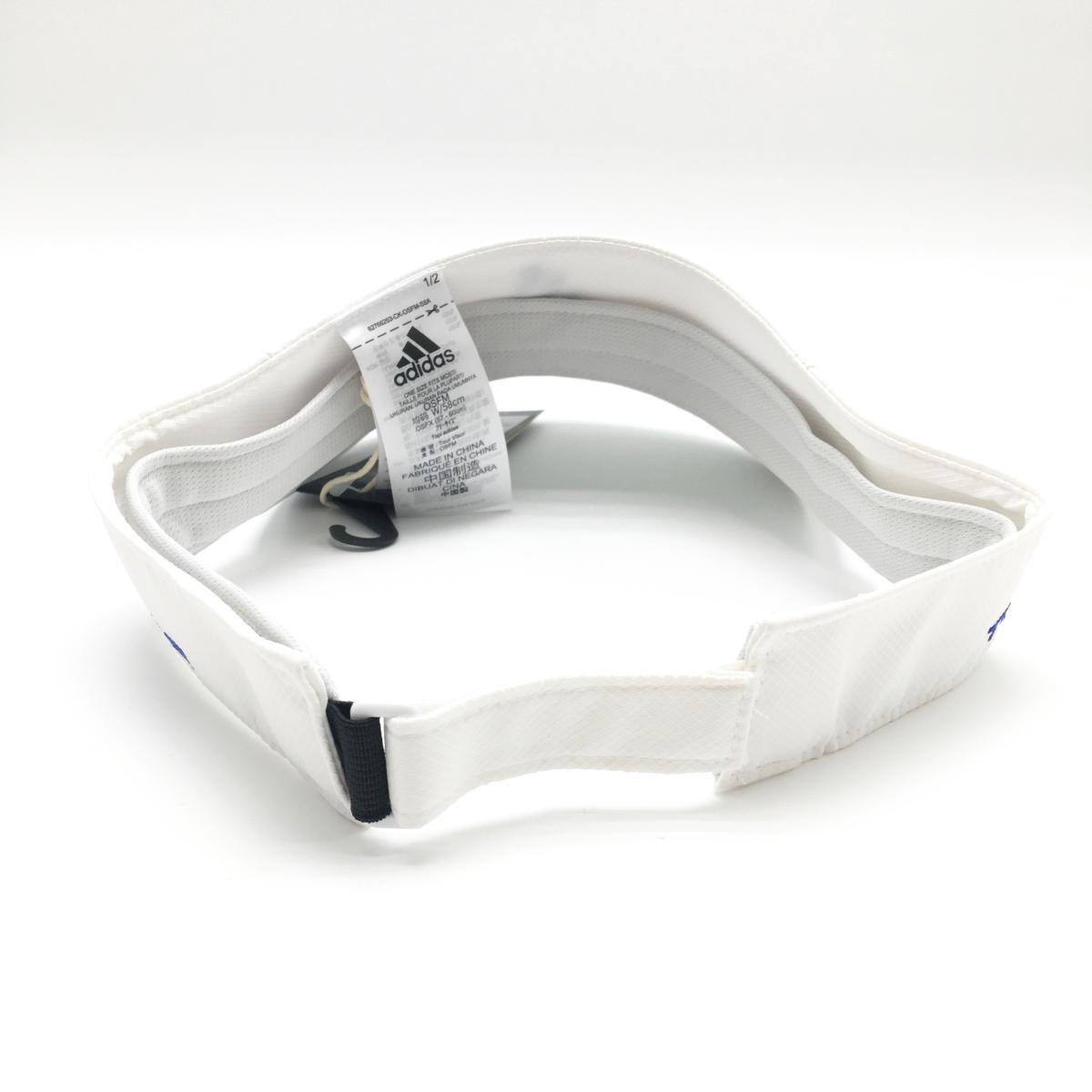 アディダス サンバイザー 白×ブルー 立体ロゴ 紙タグ付 OSFX(57-60cm)フリーサイズ ゴルフウェア adidas
