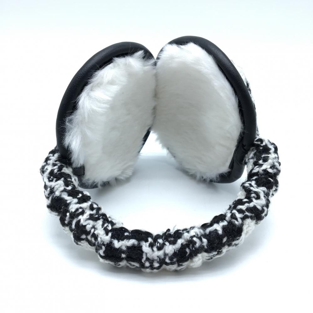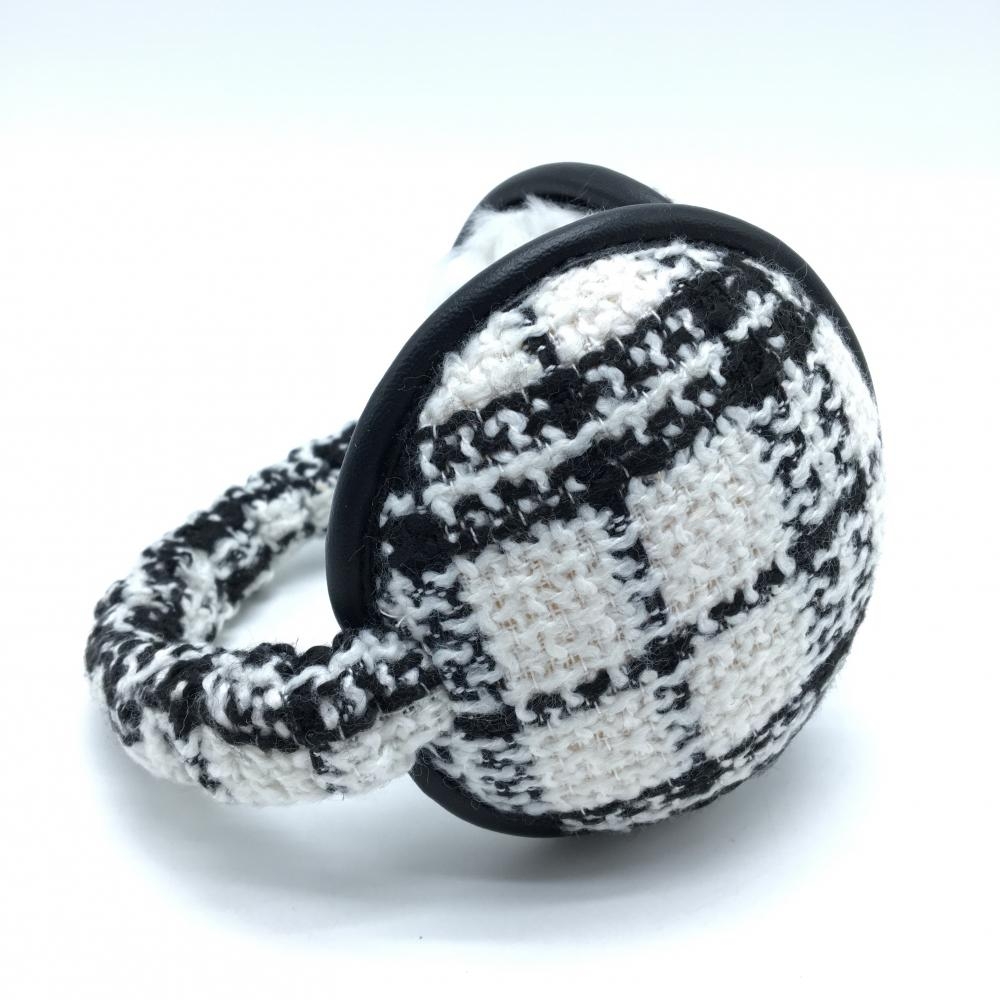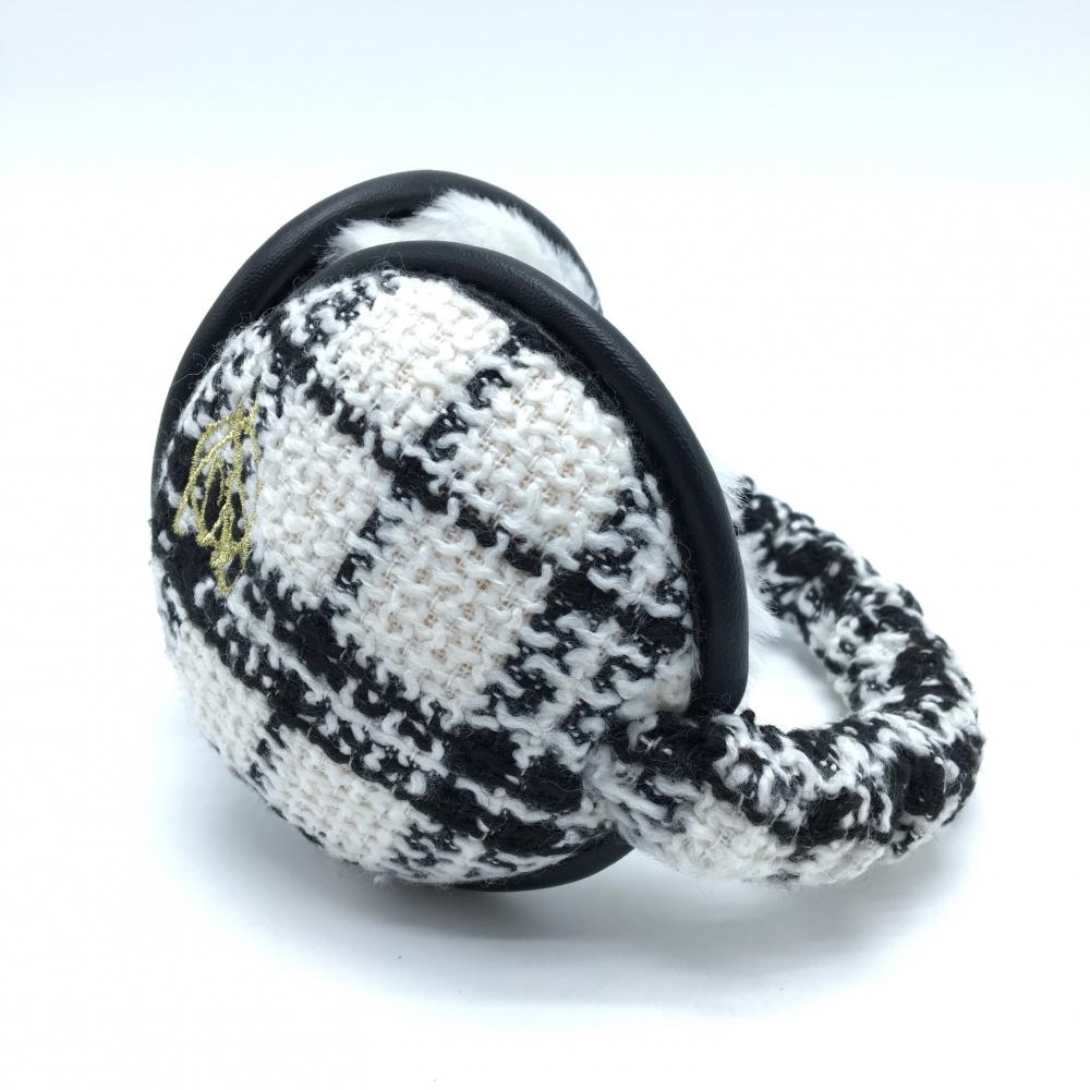 【超美品】リエンダスエルタ イヤーマフ 黒×白 チェック 裏ボア ゴルフウェア rienda suelta