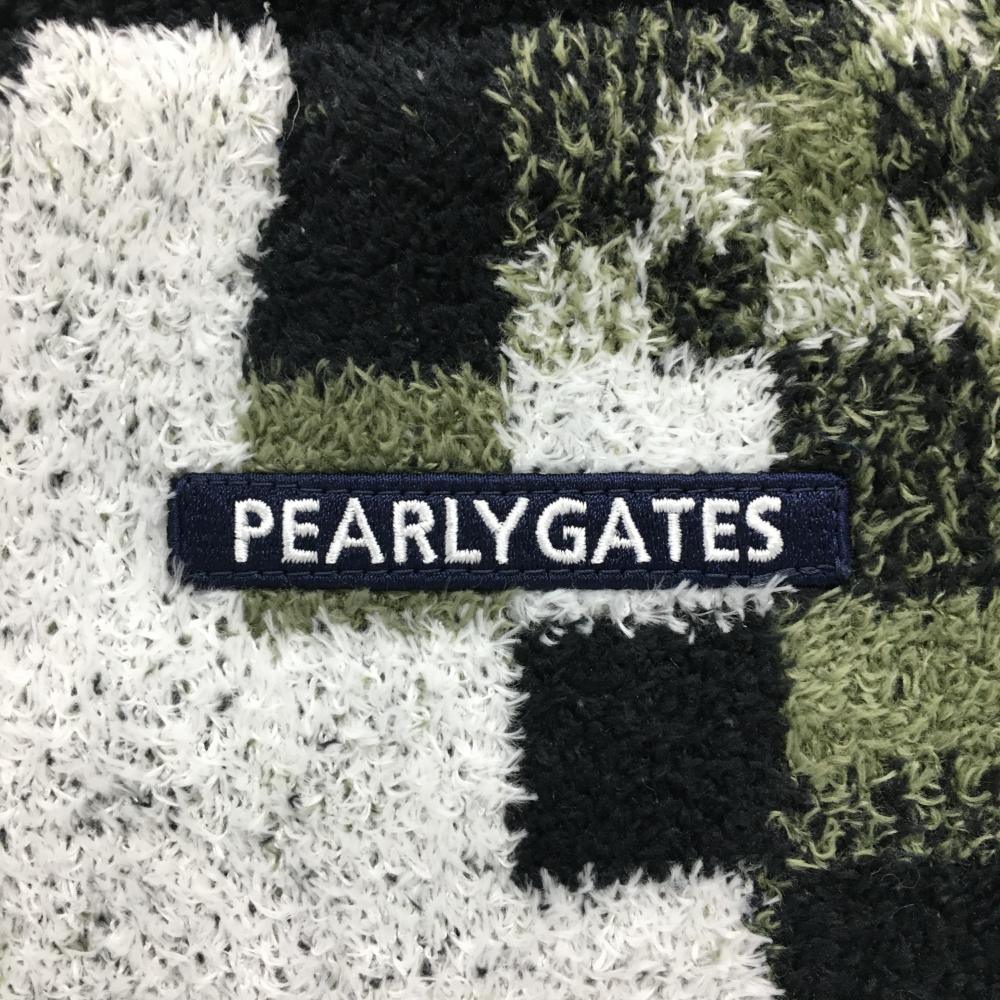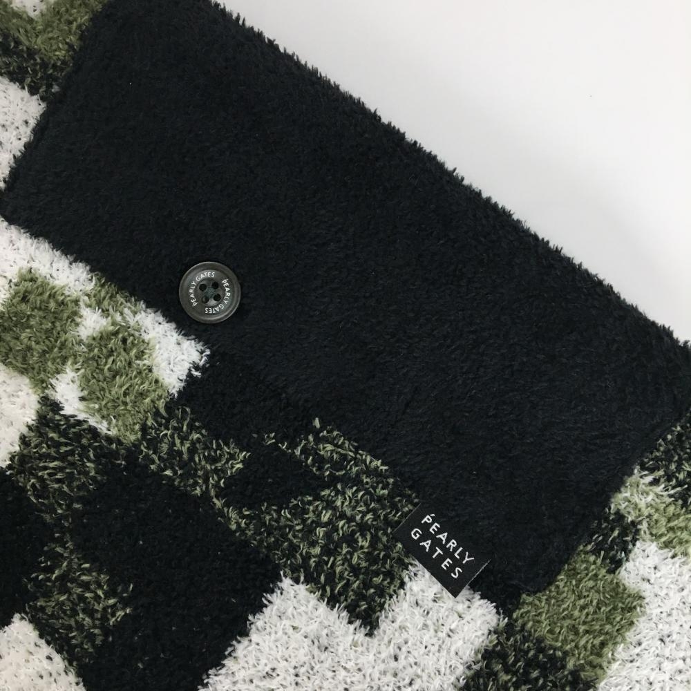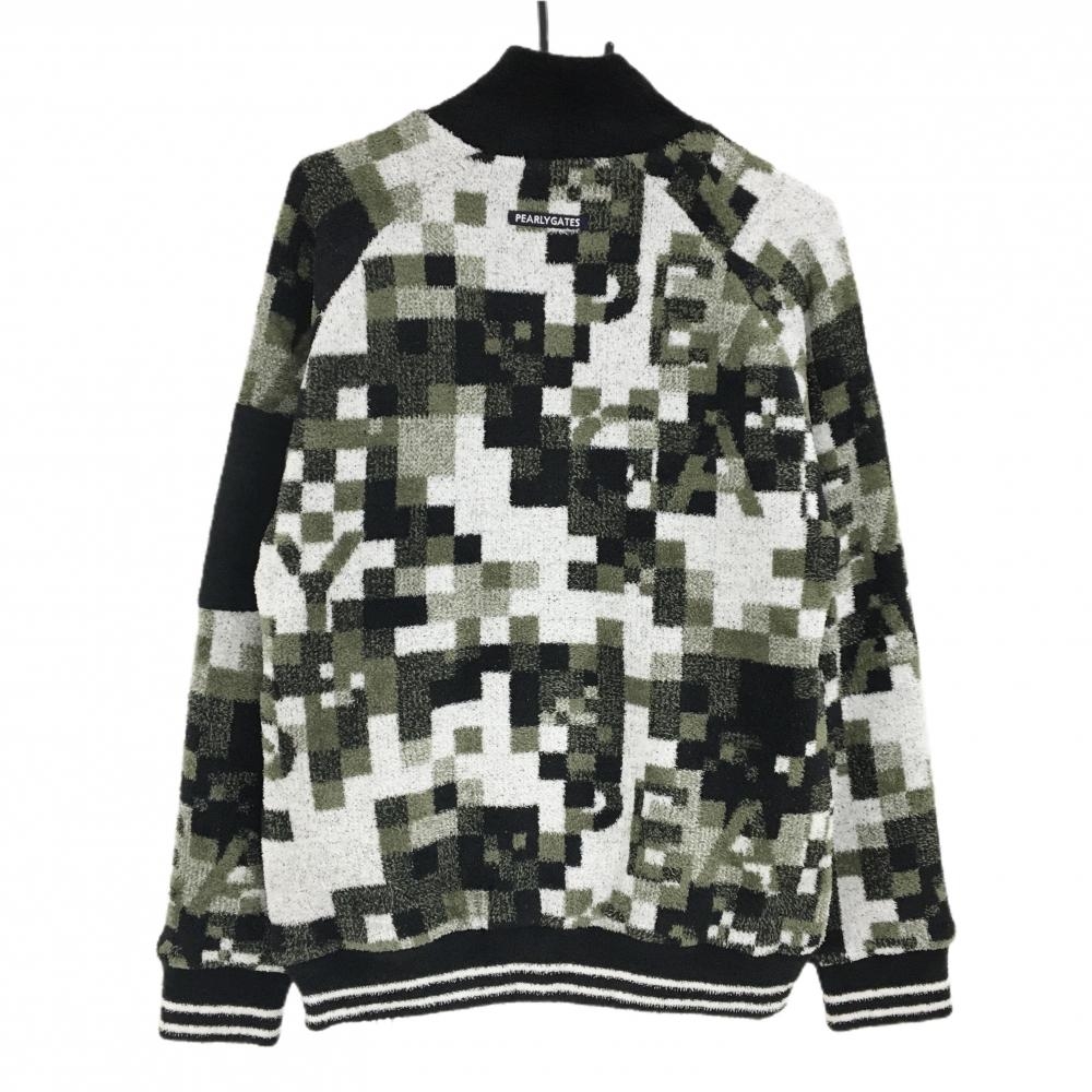 【新品】パーリーゲイツ ニットジャケット 白×黒×グリーン系 総柄 起毛 裏地柄 メンズ 6(XL) ゴルフウェア 2024年モデル PEARLY GATES