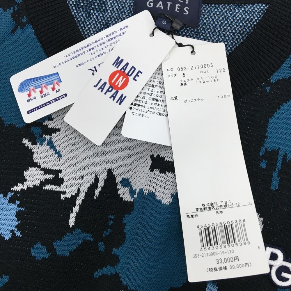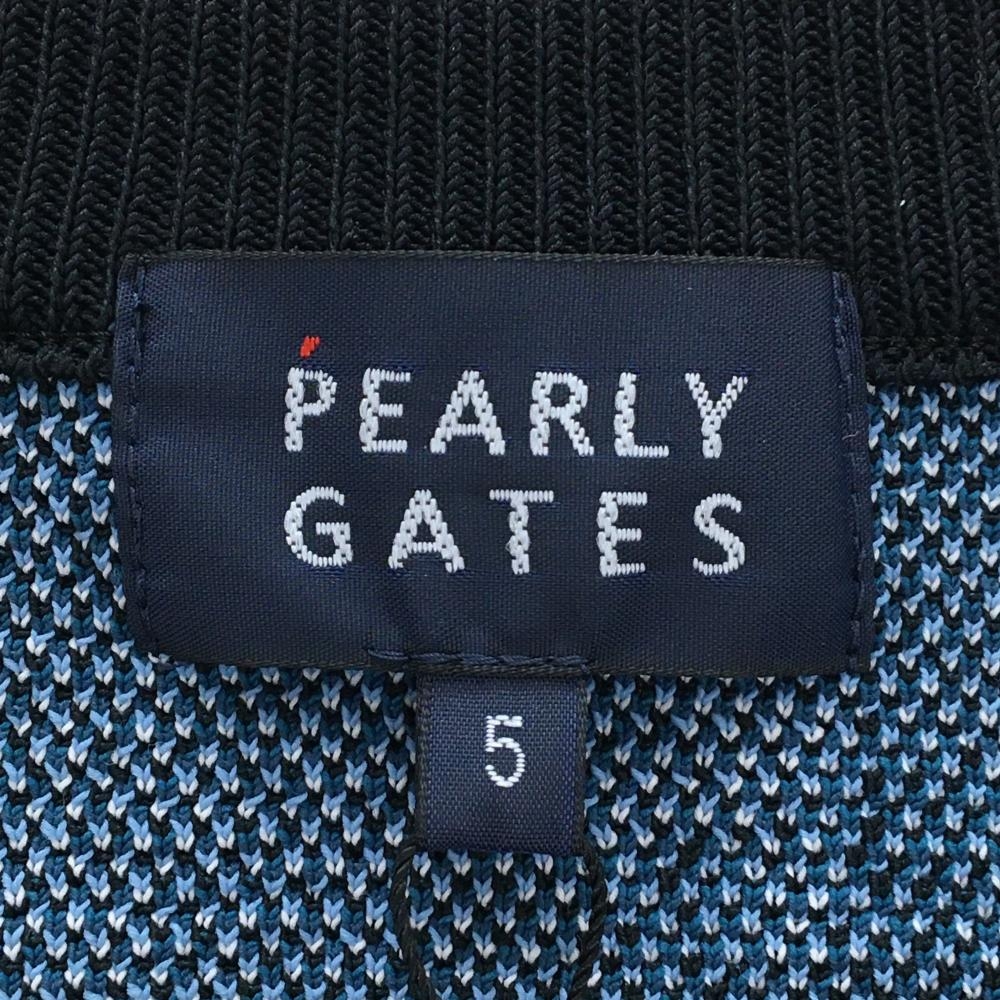 【新品】パーリーゲイツ セーター ダークネイビー×ブルー系×白 総柄 胸ロゴ ニット メンズ 5(L) ゴルフウェア PEARLY GATES