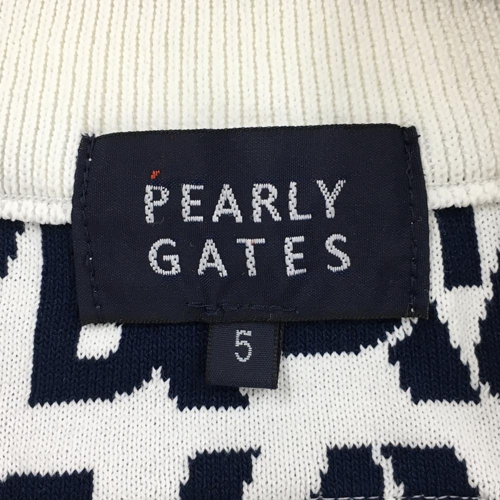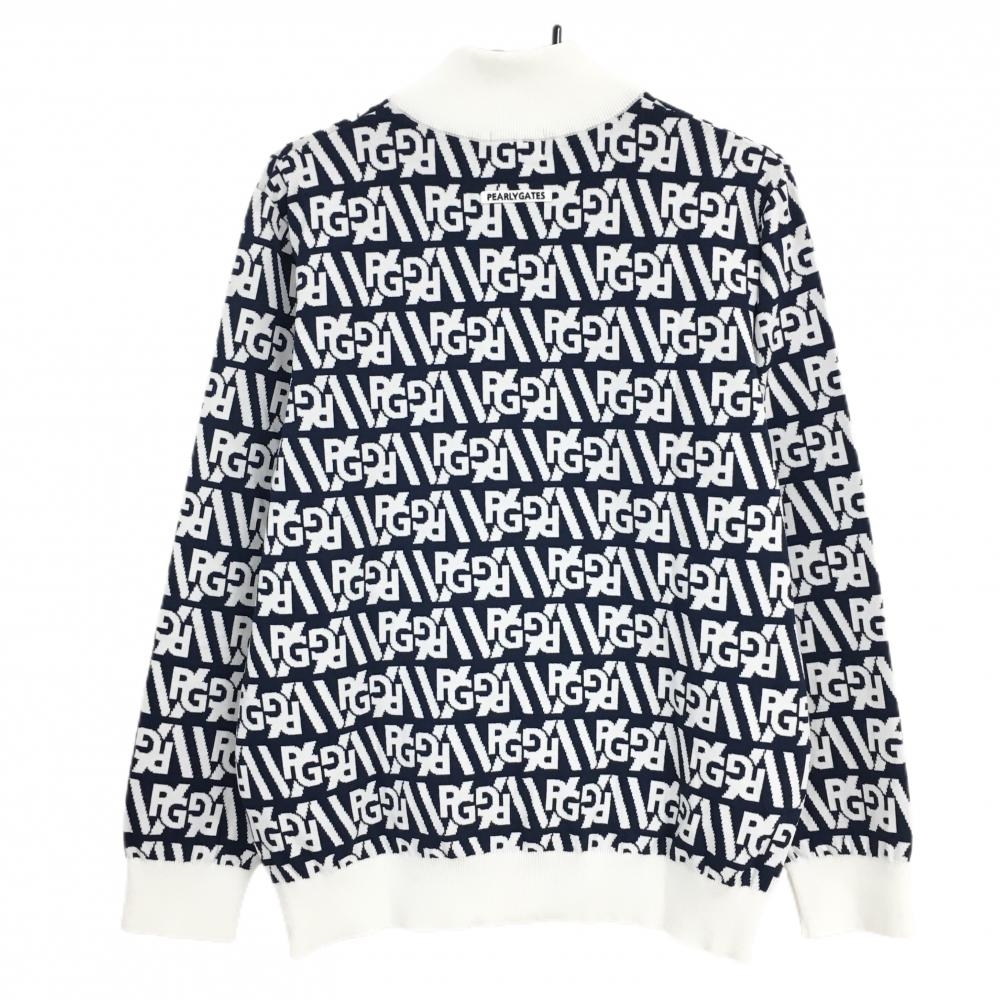 【新品】パーリーゲイツ ニットジャケット ネイビー×白 総柄 ダブルジップ 胸ロゴ メンズ 5(L) ゴルフウェア PEARLY GATES