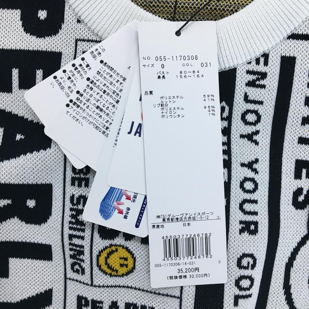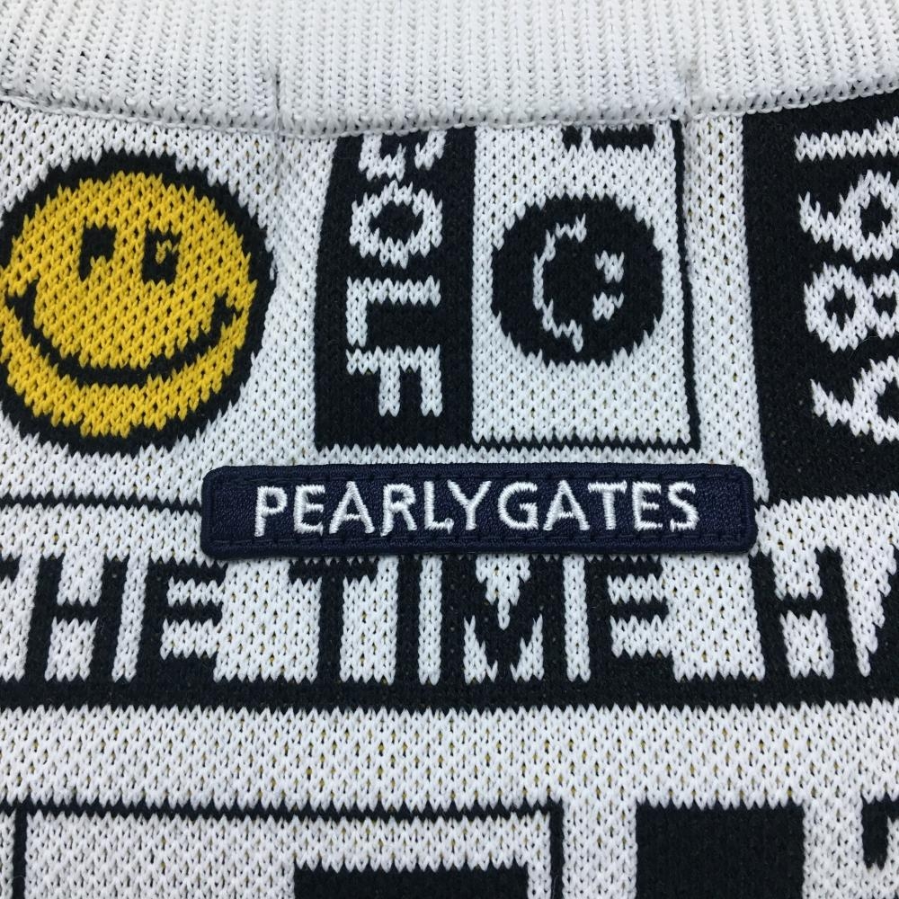 【新品】パーリーゲイツ セーター 白×黒 総柄 ニコちゃん スマイル ニット レディース 0(S) ゴルフウェア PEARLY GATES