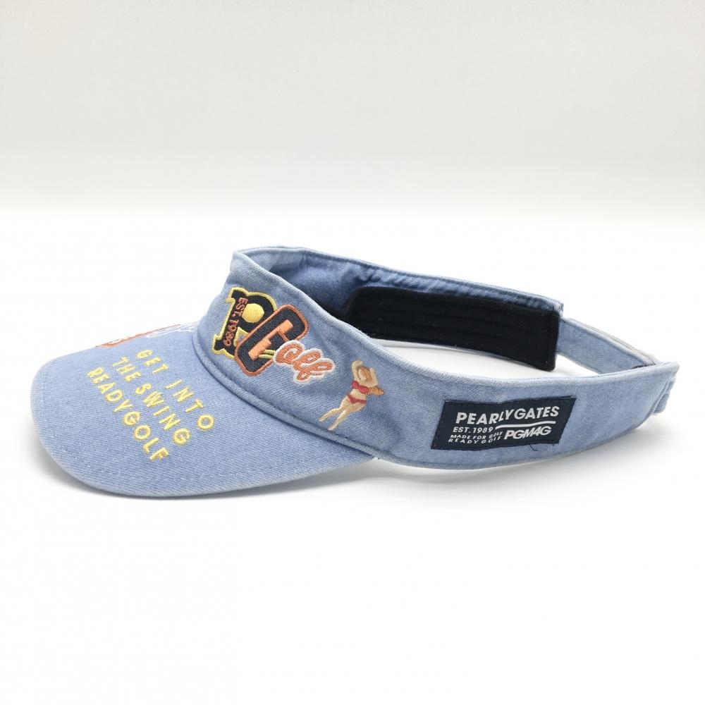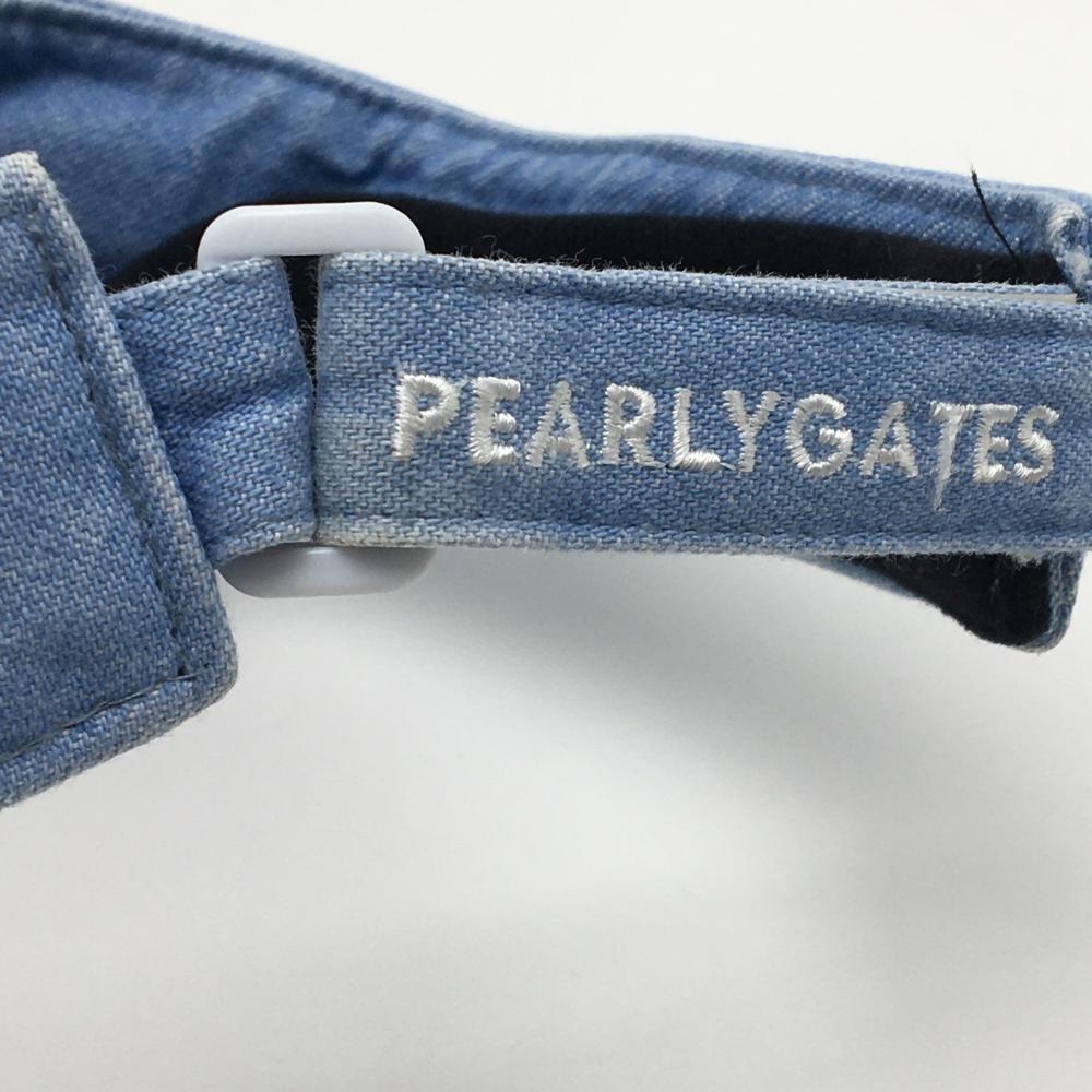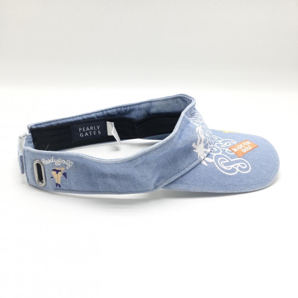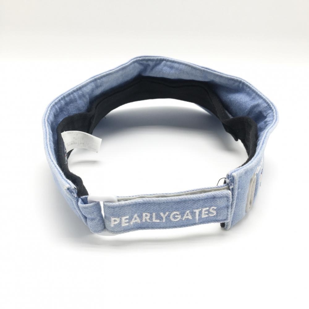 【美品】パーリーゲイツ サンバイザー ライトブルー×イエロー ロゴ 汗取りパッド付 FR ゴルフウェア PEARLY GATES