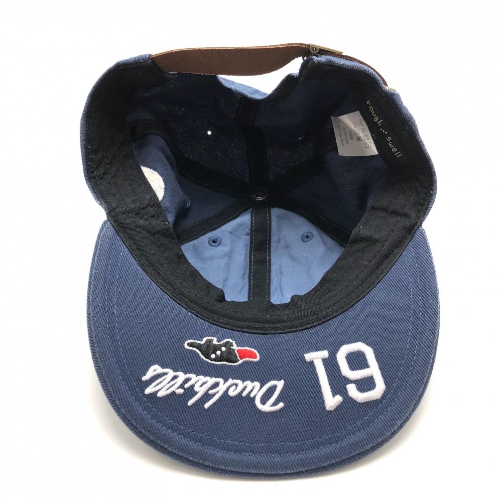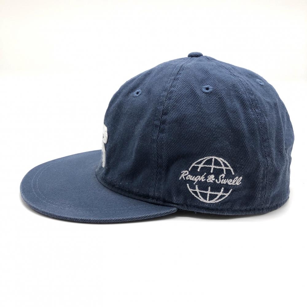 ラフアンドスウェル フラットキャップ ネイビー×白 ロゴワッペン ゴルフウェア rough&swell