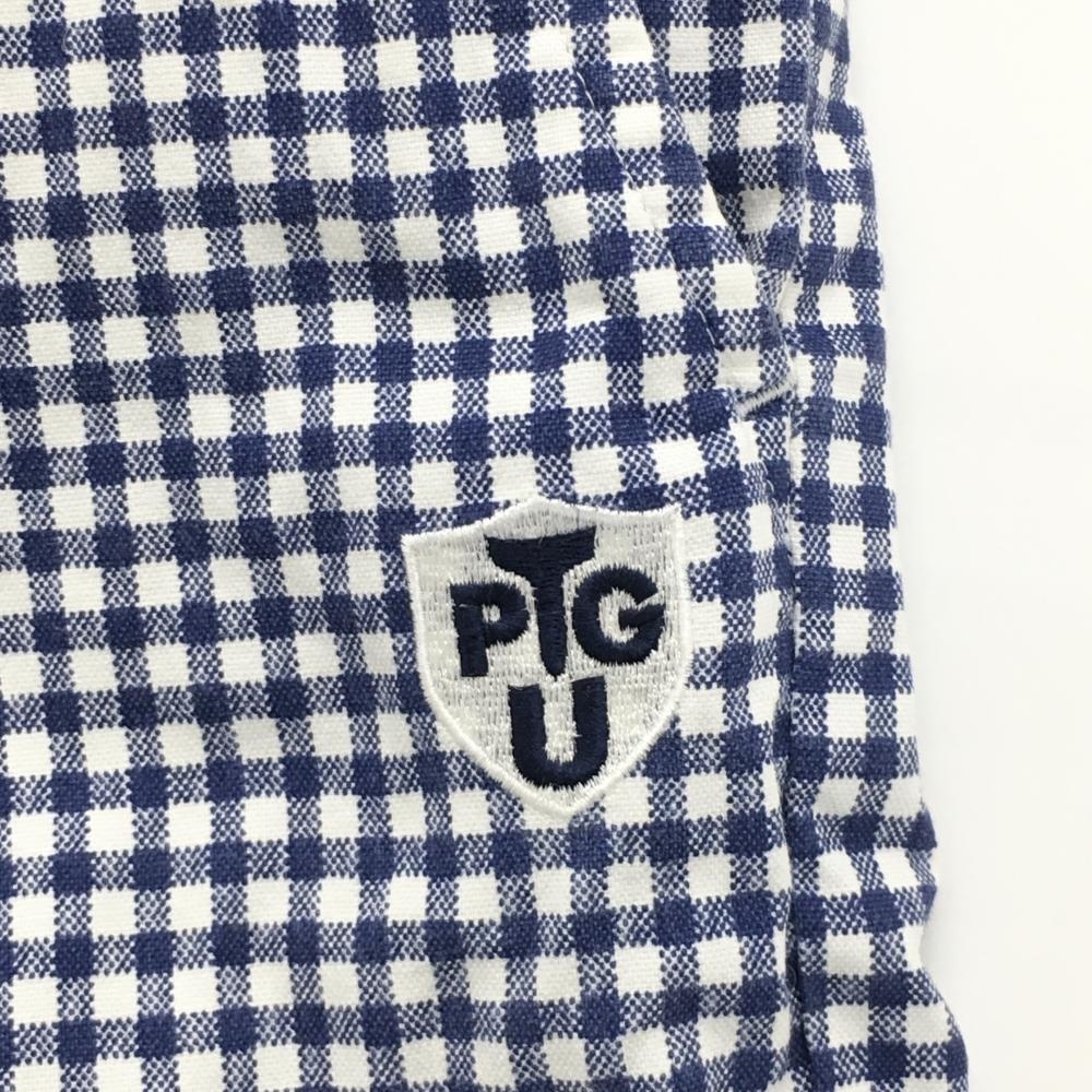 【美品】パーリーゲイツ パンツ 白×ブルー チェック コットン混 ロゴ刺しゅう メンズ 4(M) ゴルフウェア PEARLY GATES