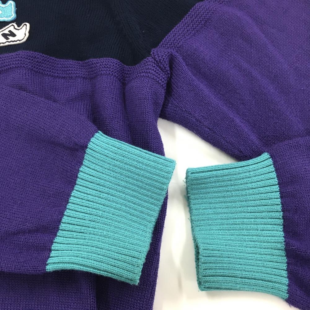 ニューバランスゴルフ セーター ネイビー×パープル スニーカーワッペン ウール混 ニット レディース L ゴルフウェア New Balance