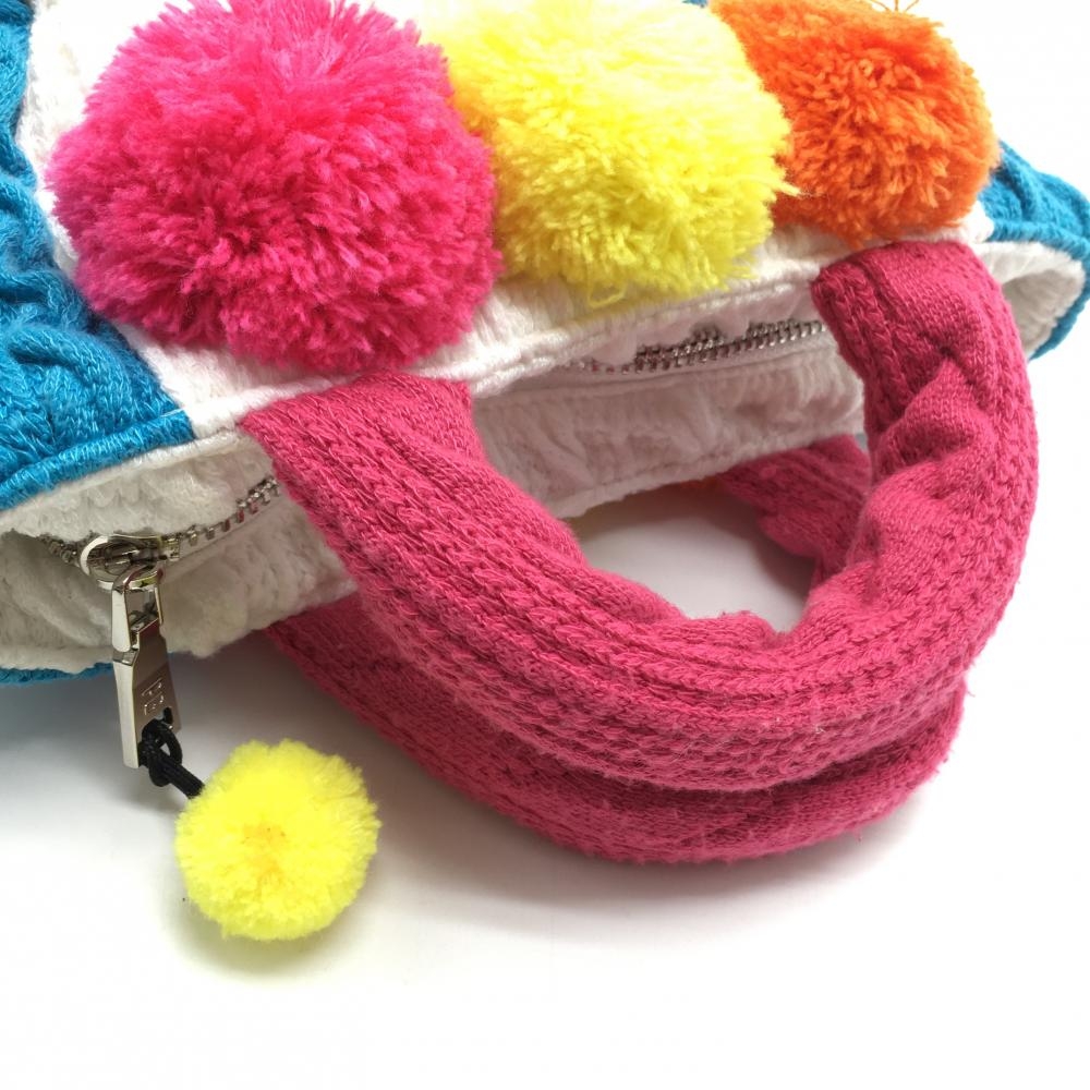 【美品】パーリーゲイツ カートバッグ ブルー×白 ケーブル編み ポンポン付 内ポケット ゴルフ PEARLY GATES