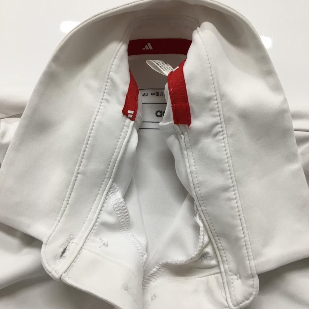 【美品】アディダス 長袖ポロシャツ 白×黒 胸ロゴ ボタンダウン レディース XL ゴルフウェア 2024年モデル adidas