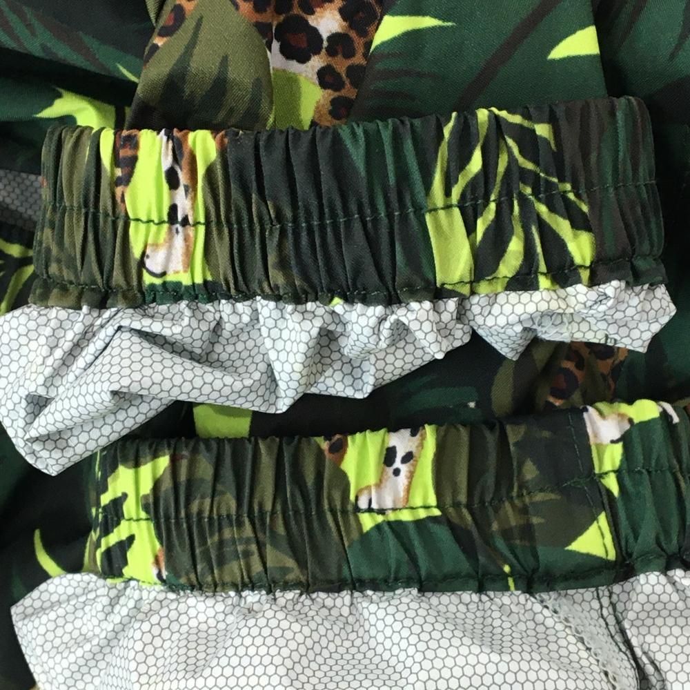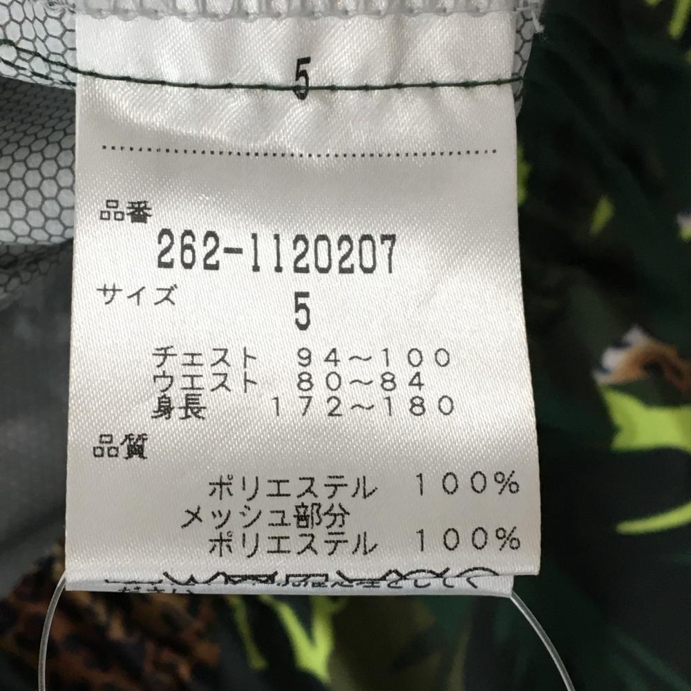 【美品】ジャックバニー ジップパーカー グリーン×ブラウン リーフ総柄 一部レオパード メンズ 5(L) ゴルフウェア Jack Bunny