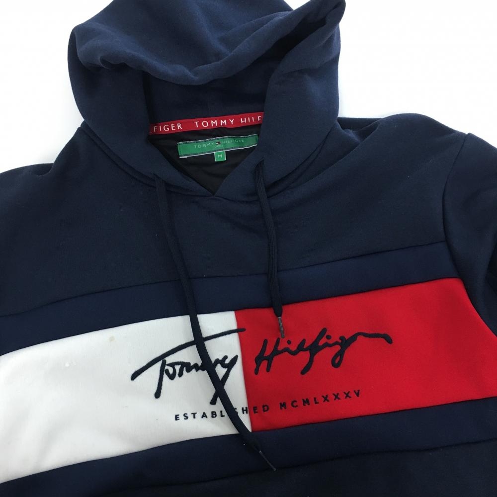 トミーヒルフィガーゴルフ フード付スウェットワンピース ネイビー×レッド フロントロゴ レディース M ゴルフウェア Tommy Hilfiger Golf