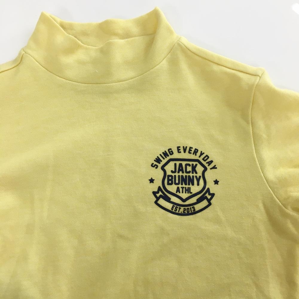 【美品】ジャックバニー 長袖ハイネックシャツ イエロー 裏起毛 ロゴネイビー レディース 2(L) ゴルフウェア Jack Bunny