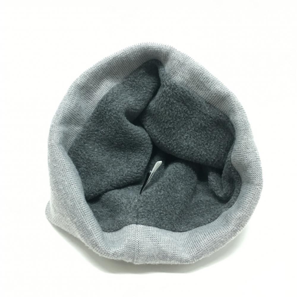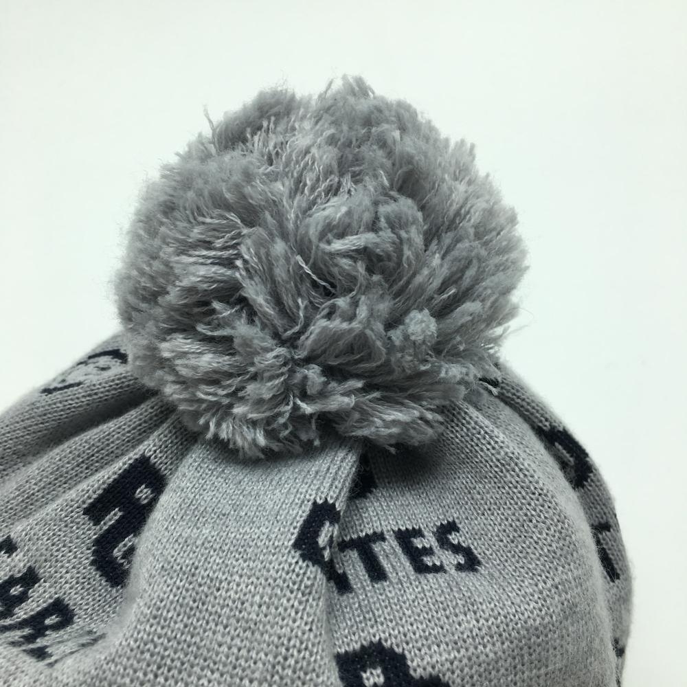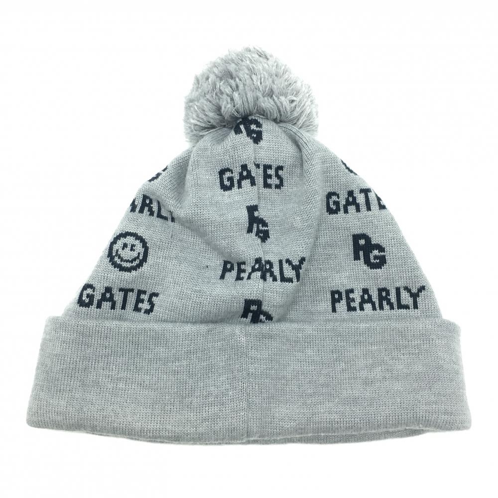 【超美品】パーリーゲイツ ニット帽 ライトグレー×ネイビー ロゴ総柄 ニコちゃん スマイル 裏起毛 FR ゴルフウェア PEARLY GATES