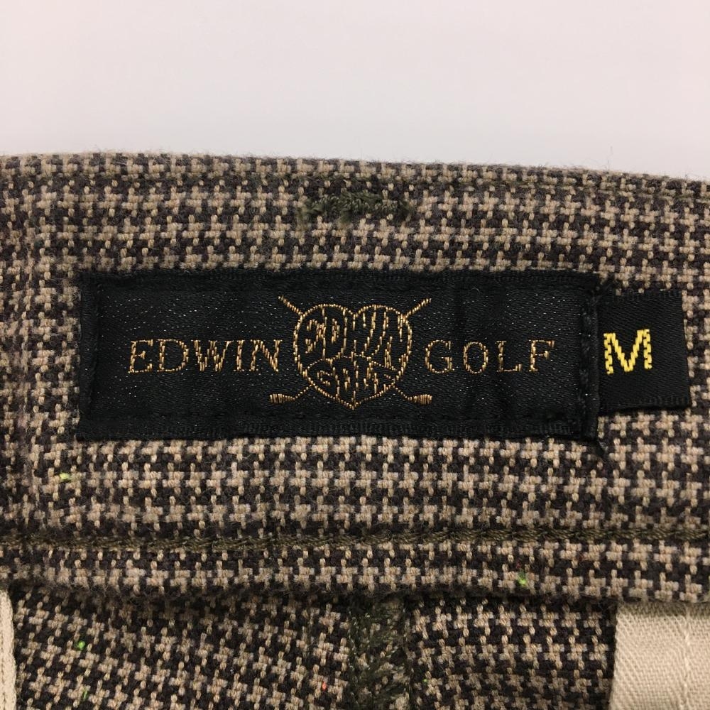 【新品】エドウィンゴルフ 七分丈パンツ ベージュ×ブラウン 千鳥格子 微起毛 複数ポケット レディース M ゴルフウェア EDWIN GOLF