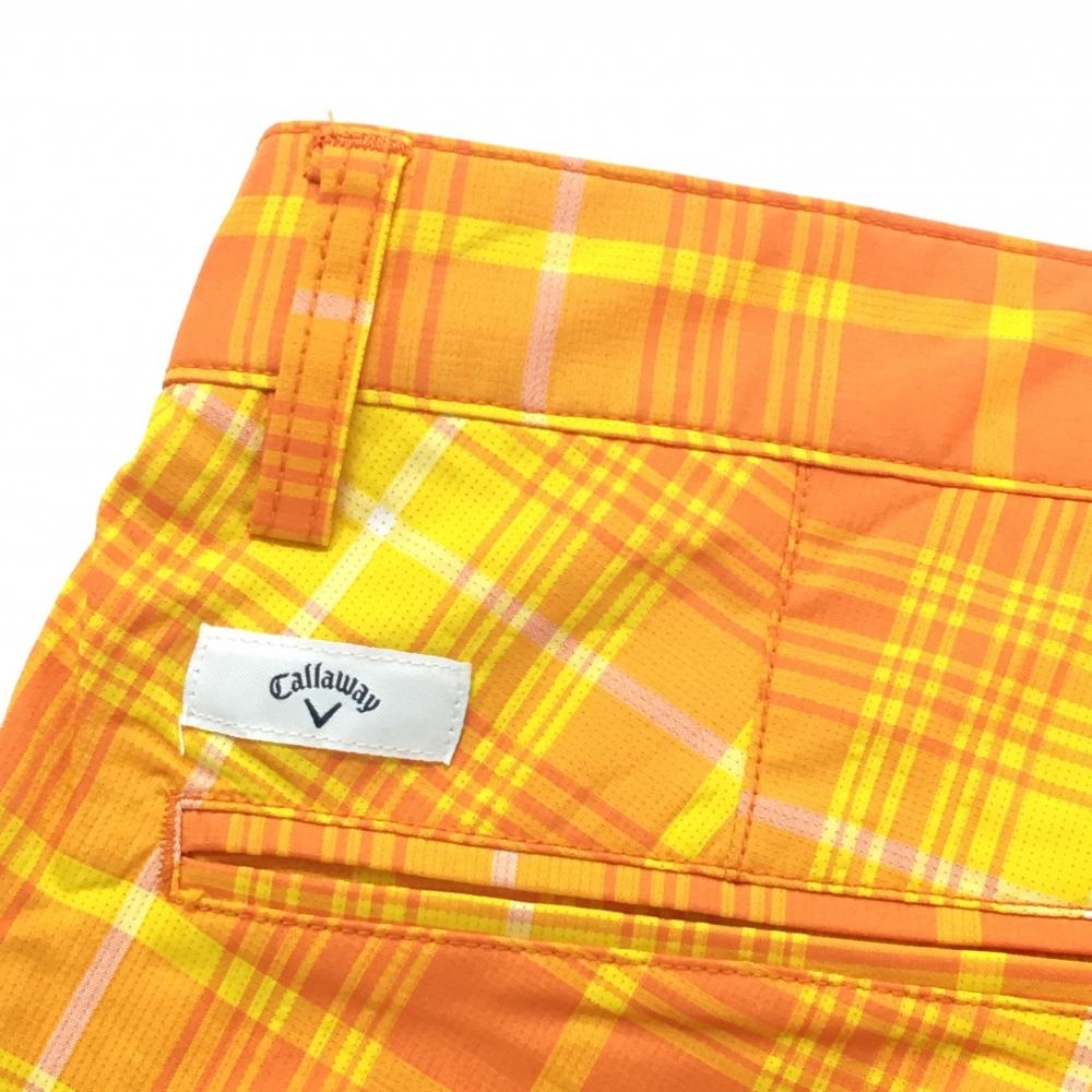 キャロウェイ パンツ オレンジ×イエロー チェック柄 バックロゴ メンズ M ゴルフウェア Callaway