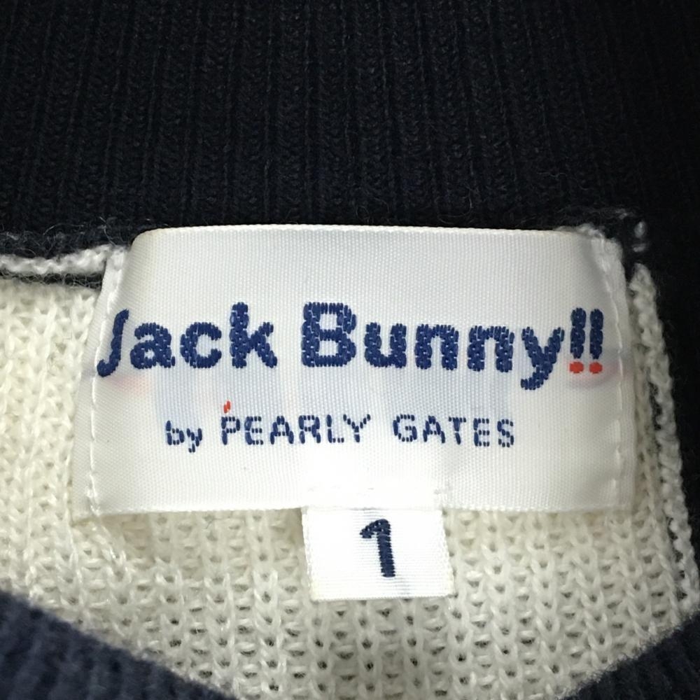 ジャックバニー ハイネックニットワンピース ネイビー×白 ケーブル編み、ロゴ刺しゅう レディース 1(M) ゴルフウェア Jack Bunny