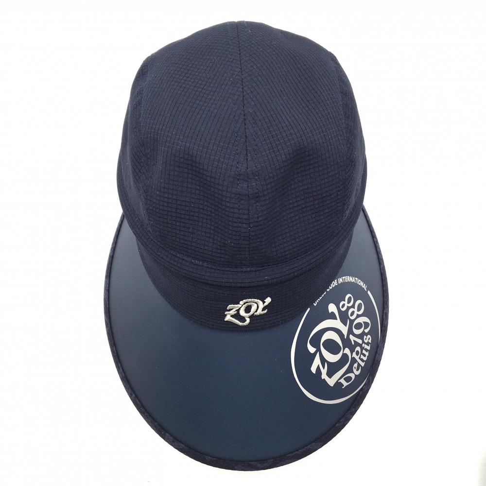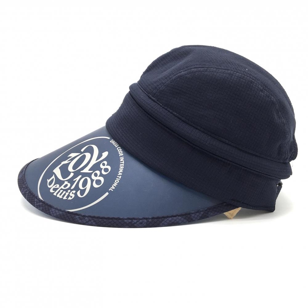 【超美品】ゾーイ 2WAYつば広キャップ ネイビー×グレー ロゴプリント クラウン着脱可 サンバイザー レディース 1098 ゴルフウェア ZOY