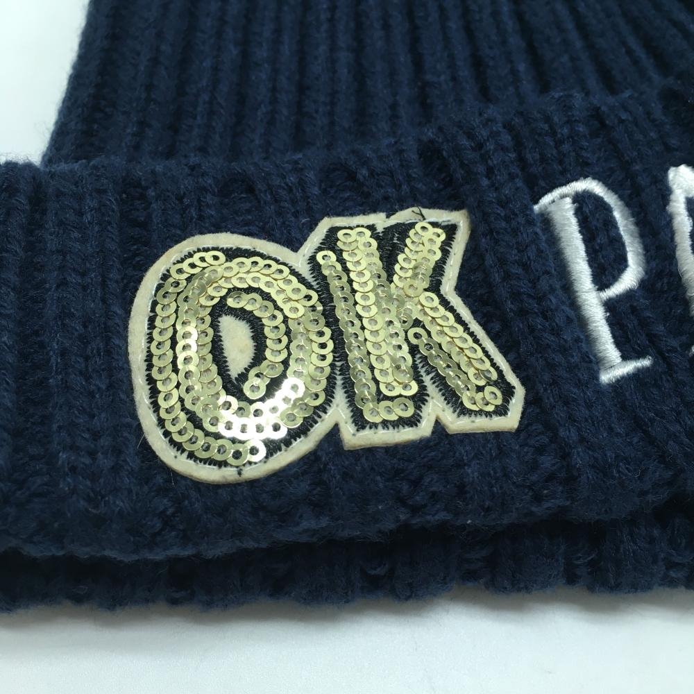 【超美品】クアルトユナイテッド ニット帽 ネイビー ロゴ刺しゅう F ゴルフウェア CUARTO UNITED