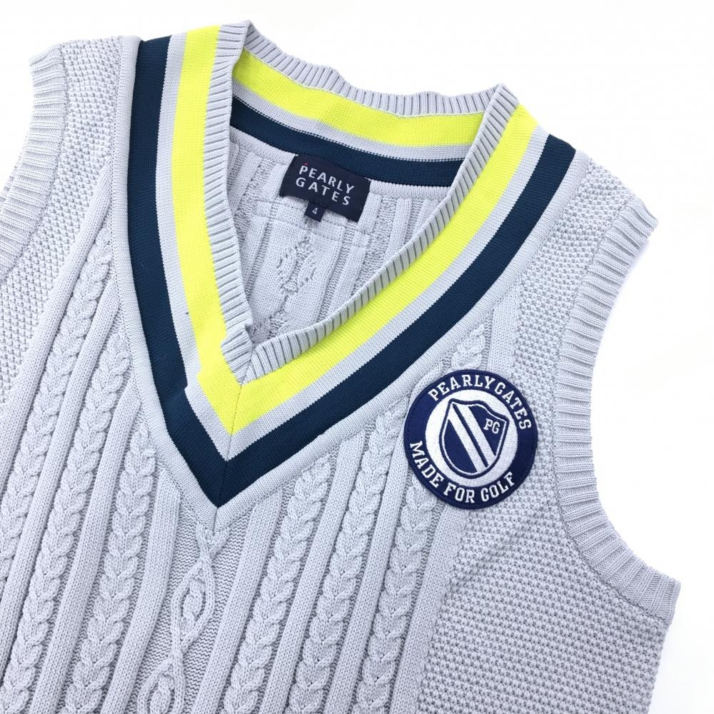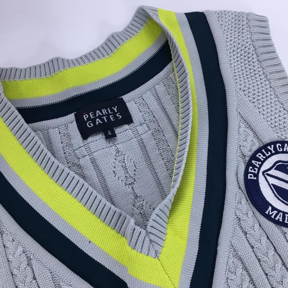 【超美品】パーリーゲイツ ニットベスト グレー×イエロー ケーブル編み メンズ 4(M) ゴルフウェア PEARLY GATES