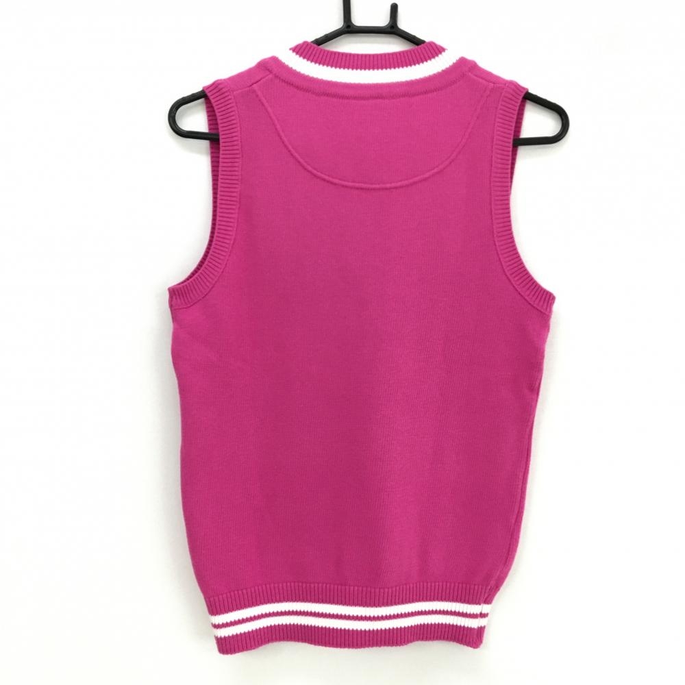 【美品】キャロウェイ ニットベスト ピンク×白 ケーブル編み Vネック ロゴ刺しゅう レディース M ゴルフウェア Callaway