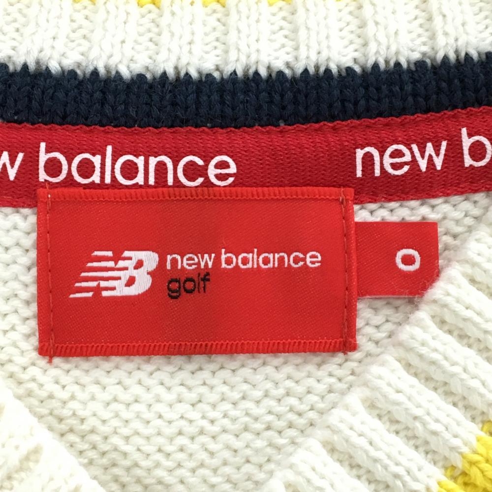 ニューバランスゴルフ ニットベスト 白×ネイビー ケーブル編み Vネック ロゴ刺しゅう ウール混 レディース 0(S) ゴルフウェア New Balance