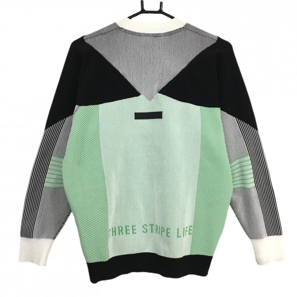 【超美品】アディダス セーター 白×グリーン 一部ストライプ ニット レディース M ゴルフウェア adidas