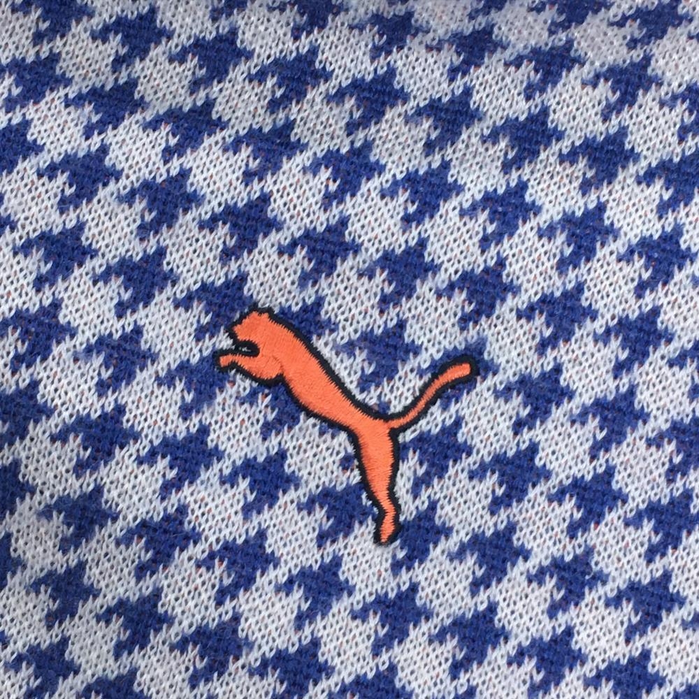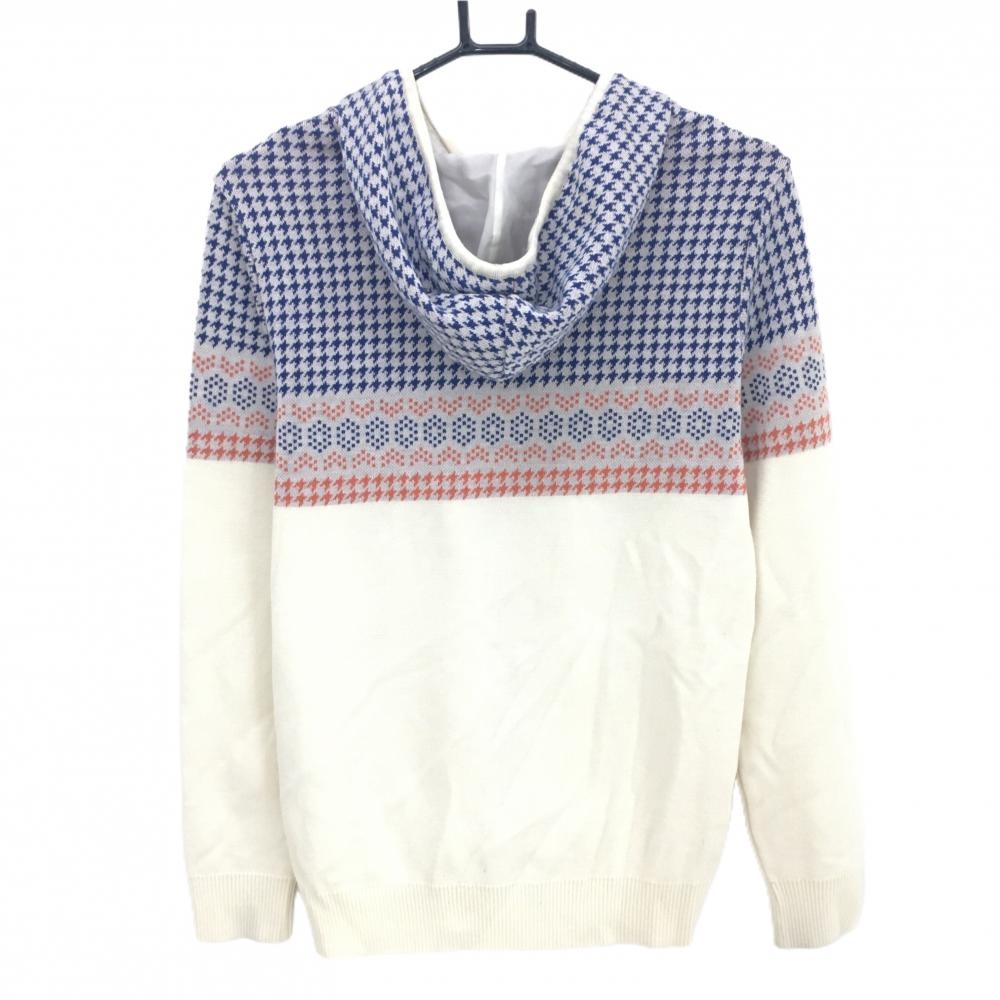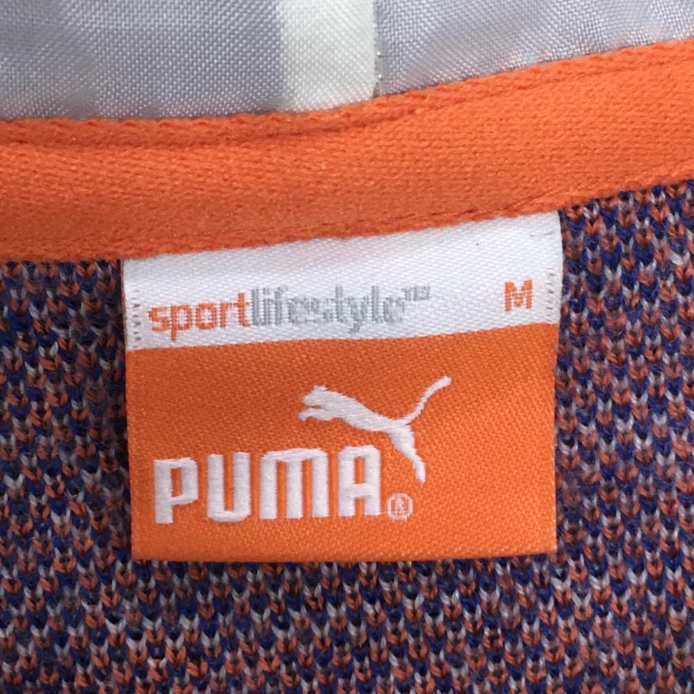 【美品】プーマ フード付セーター アイボリー×ブルー×オレンジ 上部千鳥格子 メンズ M ゴルフウェア PUMA