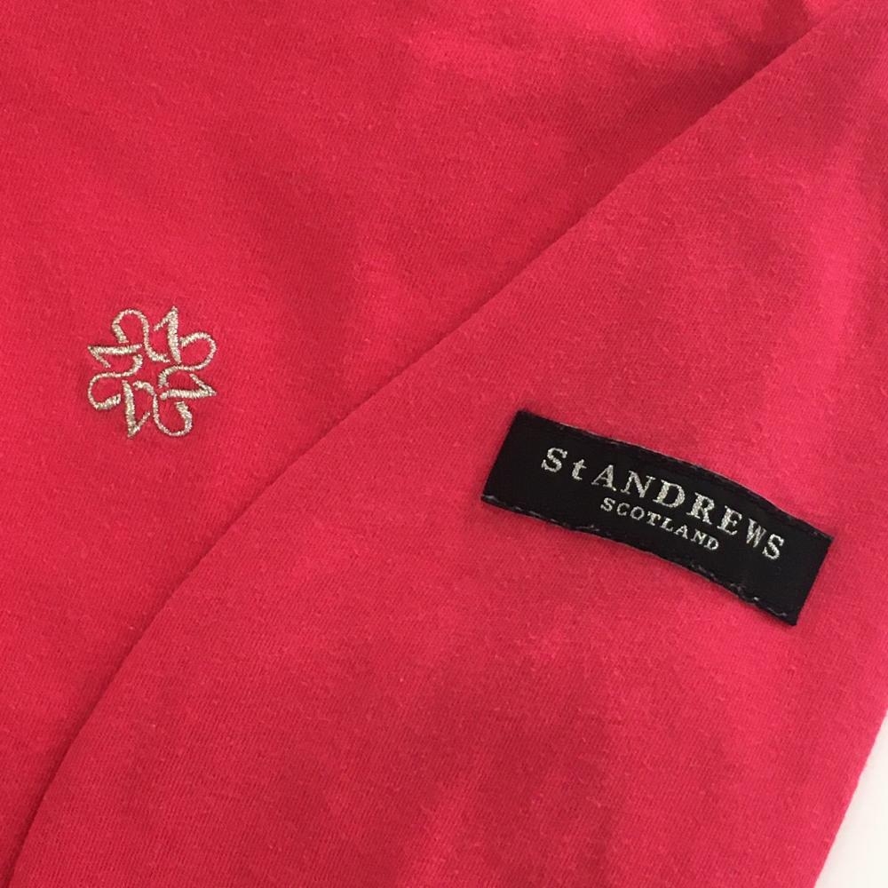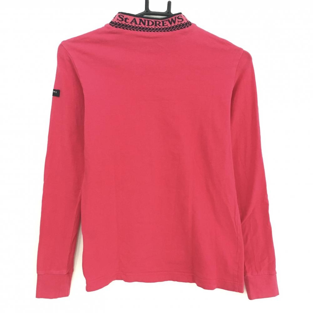 セントアンドリュース 長袖ハイネックシャツ レッドピンク×黒 ネックロゴ レディース S ゴルフウェア St ANDREWS