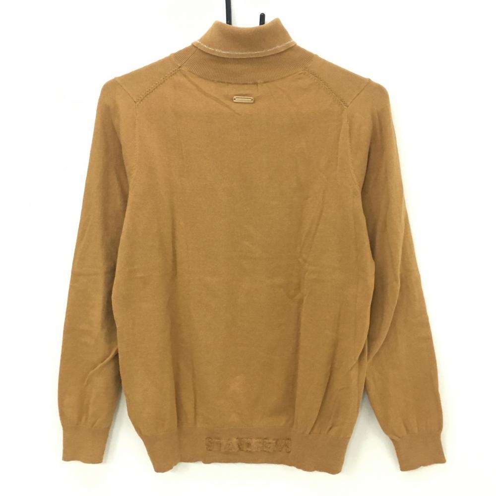 【美品】セントアンドリュース タートルネックセーター ライトブラウン×ゴールド ロゴ刺しゅう レディース S ゴルフウェア St ANDREWS