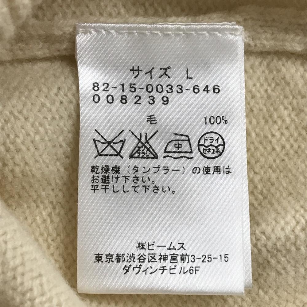 【美品】ビームスゴルフ セーター アイボリー×ネイビー フロント英字ワッペン ウール100% ニット メンズ L ゴルフウェア BEAMS GOLF