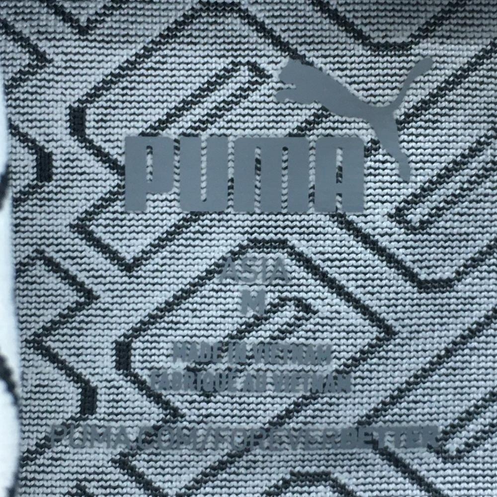 【美品】プーマ 長袖ハイネックシャツ 白×黒 ロゴ総柄 レディース M ゴルフウェア PUMA