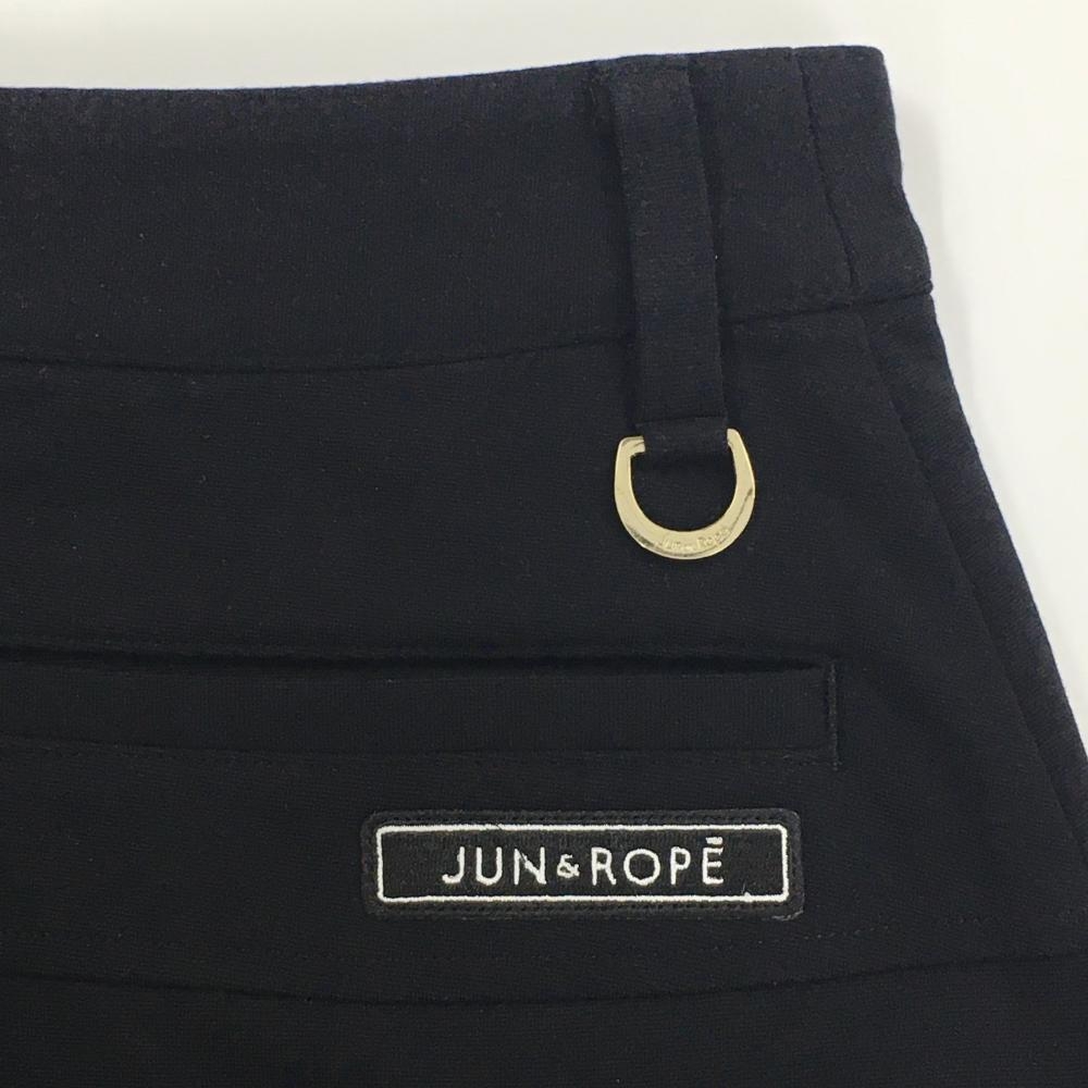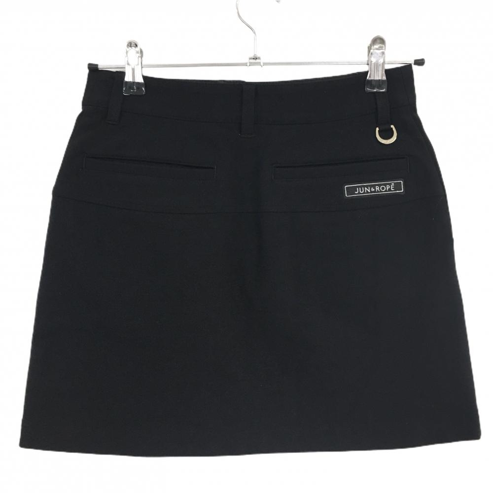 【美品】ジュンアンドロペ スカート 黒 ボックルプリーツ ロゴワッペン レディース S ゴルフウェア JUN&ROPE