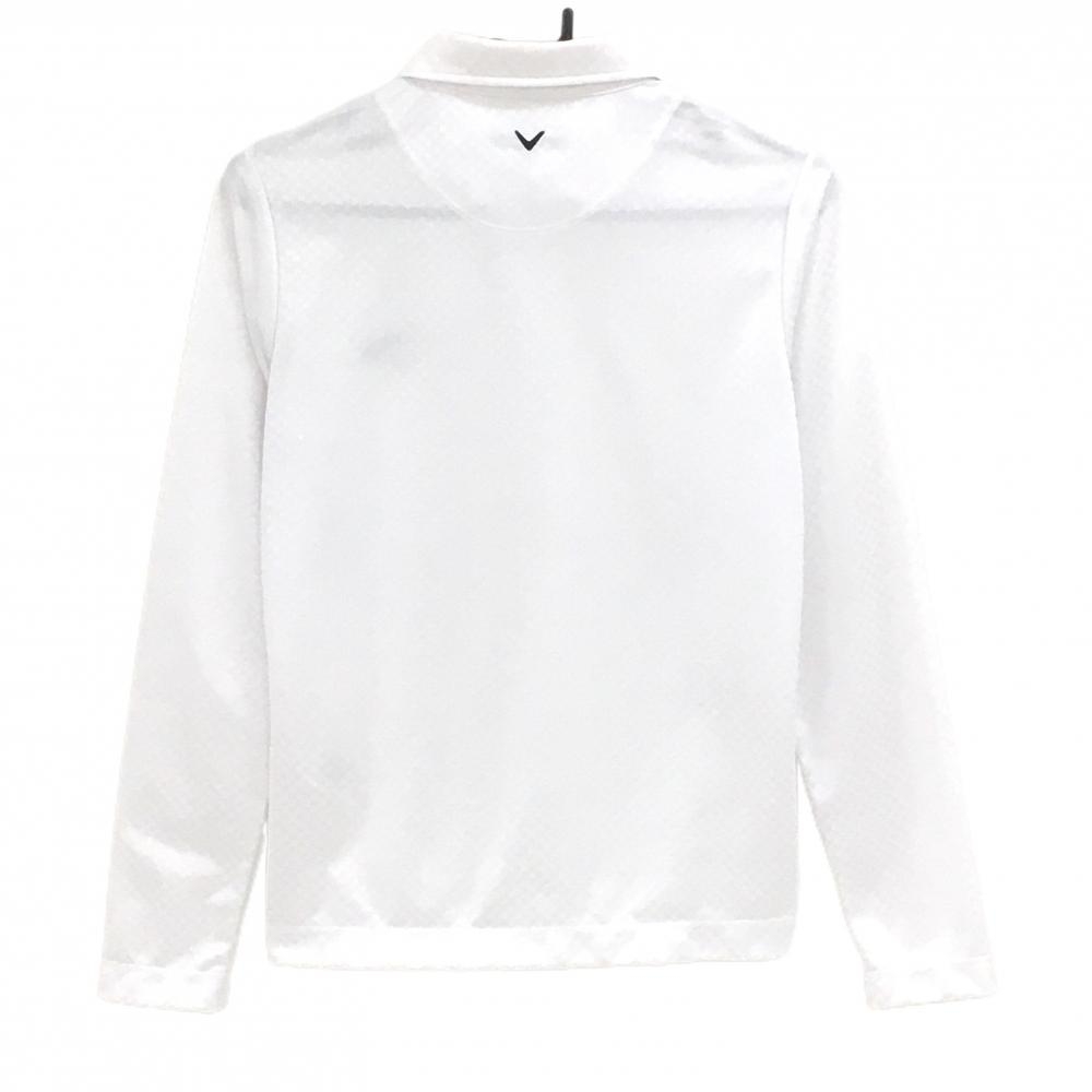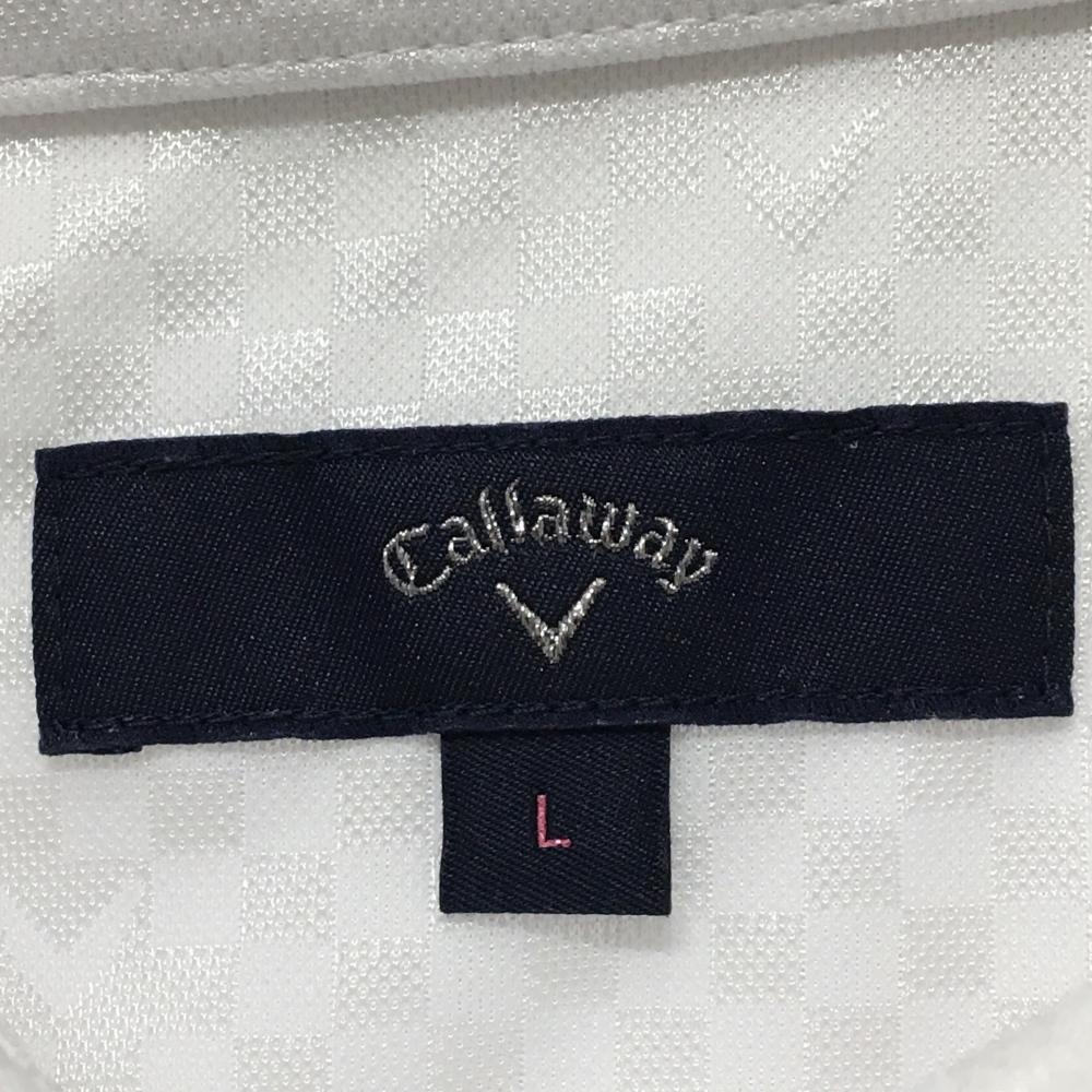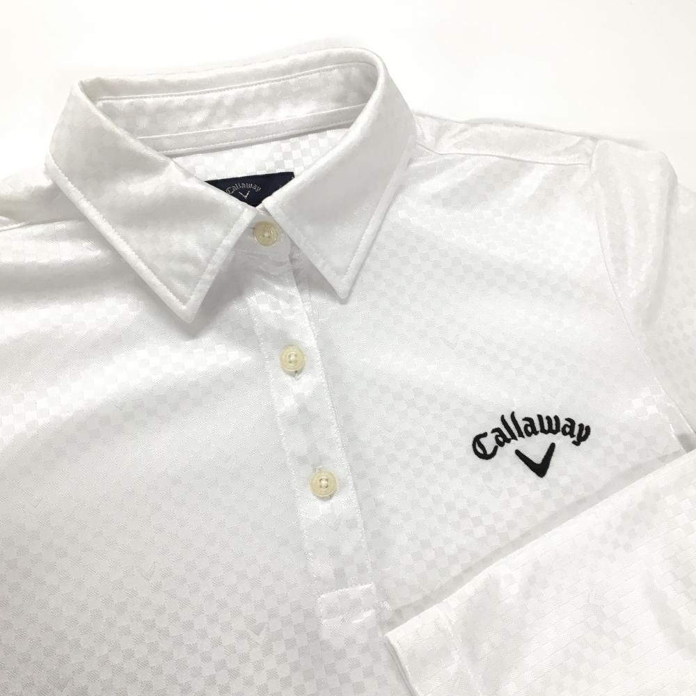 【美品】キャロウェイ 長袖ポロシャツ 白 ブロックチェック地模様 ロゴ刺しゅう レディース L ゴルフウェア Callaway