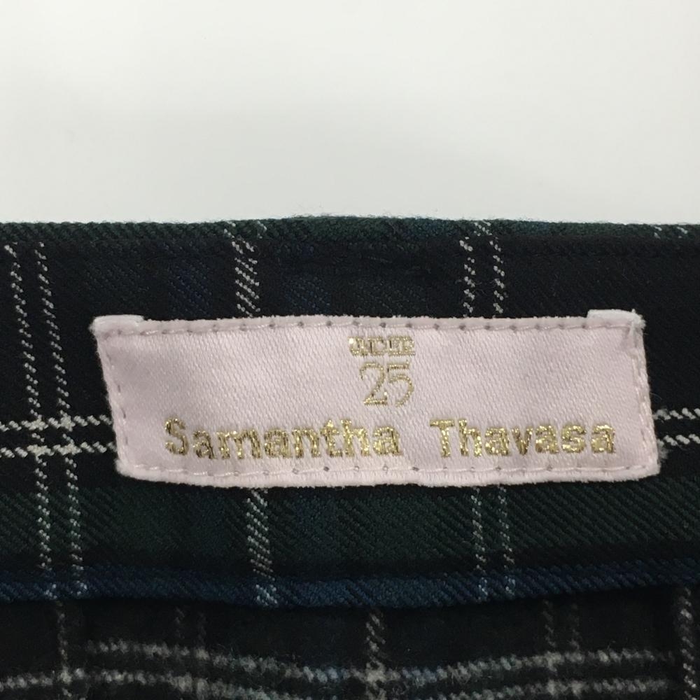 【超美品】サマンサタバサUNDER25 プリーツスカート 黒×グリーン チェック柄 裾刺しゅう レディース M ゴルフウェア Samantha Thavasa