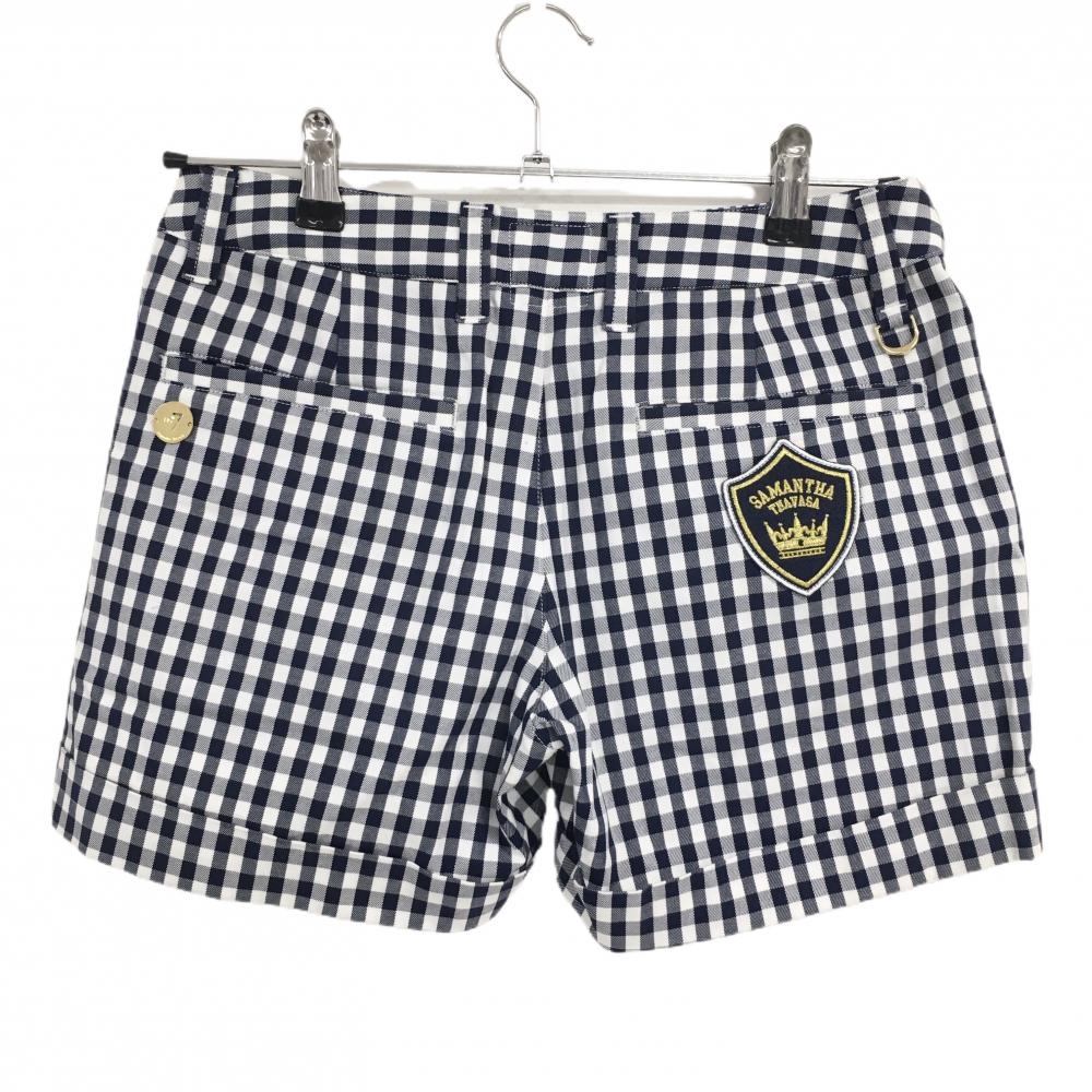 【超美品】サマンサタバサ ショートパンツ 白×ネイビー チェック柄 ロゴワッペン レディース M ゴルフウェア Samantha Thavasa