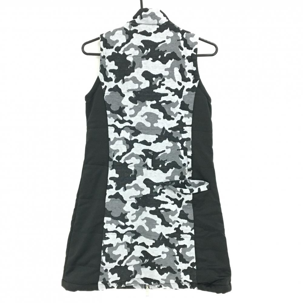 【新品】キスオンザグリーン 中綿ノースリーブワンピース 白×黒×グレー 迷彩 カモフラ レディース 2(M) ゴルフウェア kiss on the green