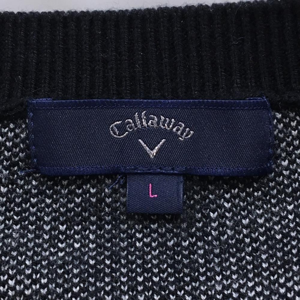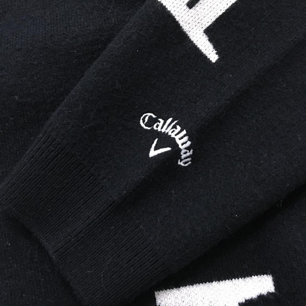 キャロウェイ セーター 黒×白 一部英字柄 ウール混 ニット レディース L ゴルフウェア Callaway