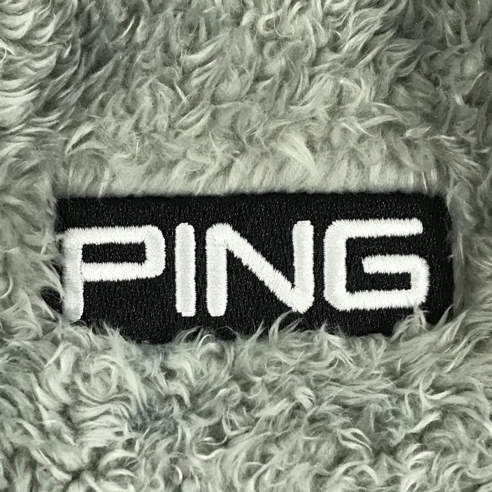 【超美品】ピン ボアベスト グレー 胸ロゴ刺しゅう ダブルジップ レディース S ゴルフウェア PING