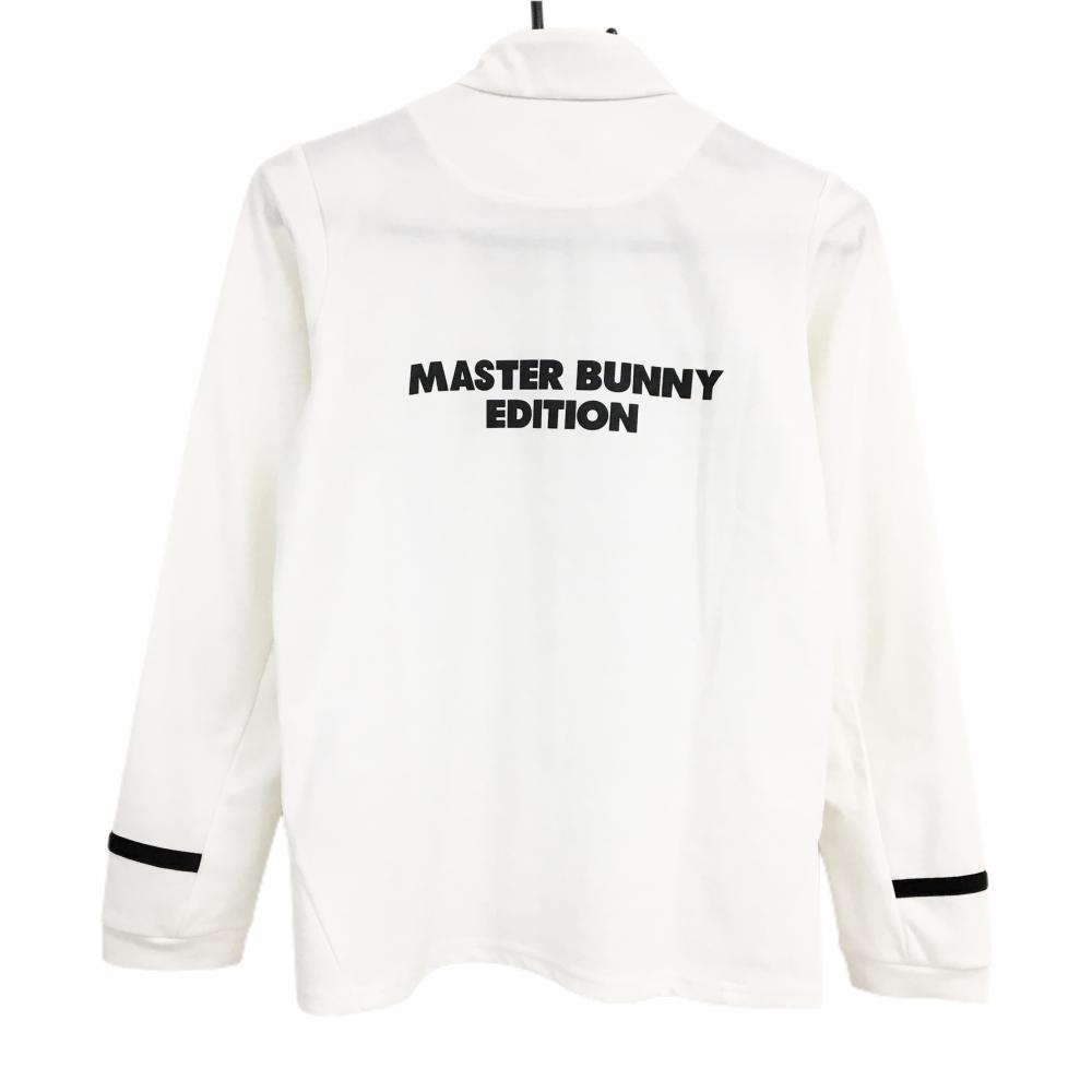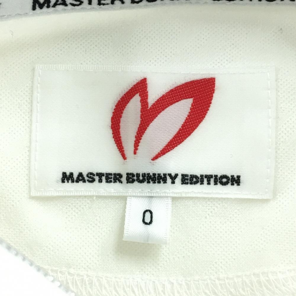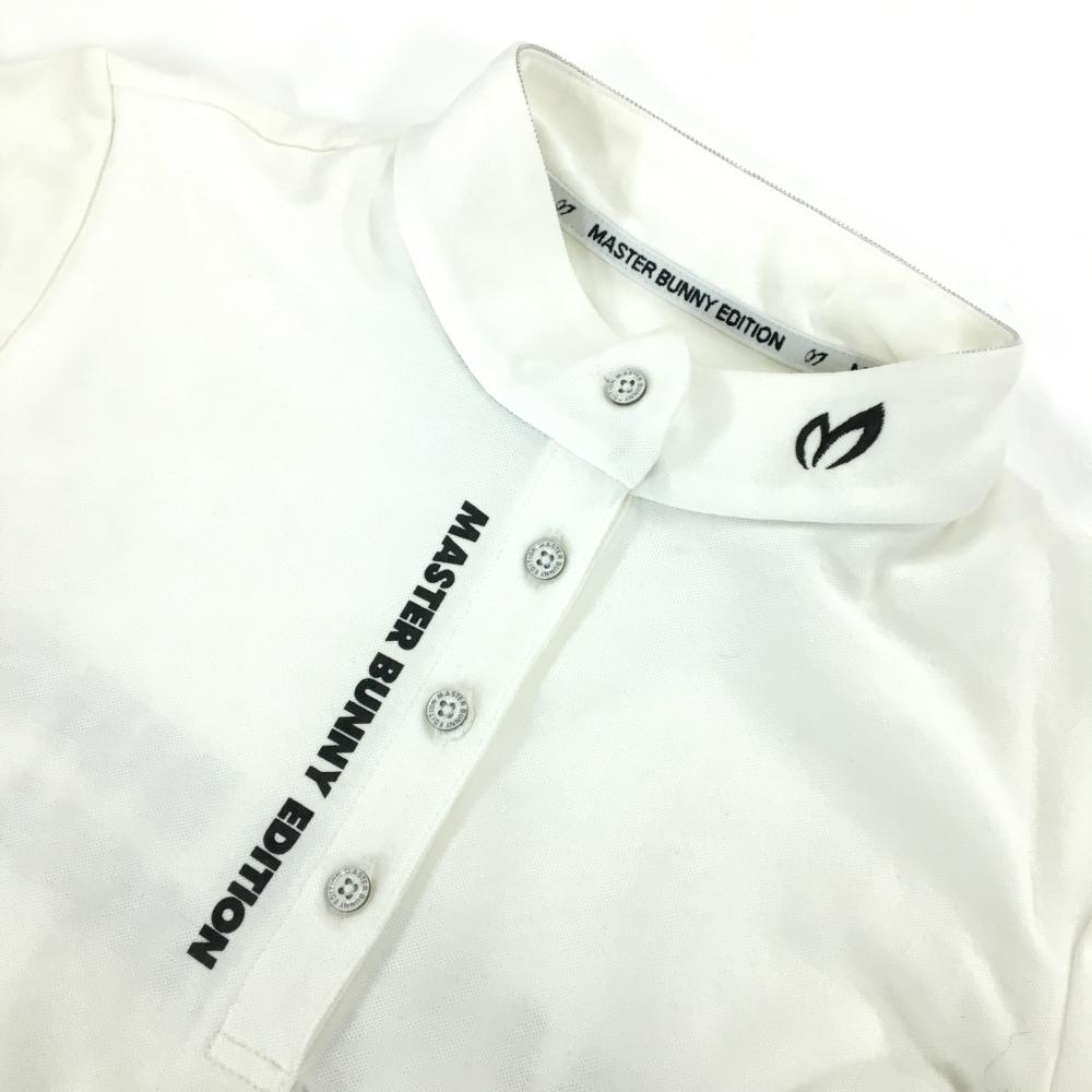 【超美品】マスターバニー 長袖ポロシャツ 白 千鳥格子地模様 スタンドカラー ロゴ黒 レディース 0(S) ゴルフウェア MASTER BUNNY EDITION