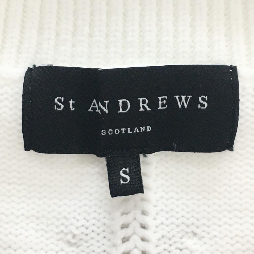 【超美品】セントアンドリュース ニットベスト 白 フロント柄 Vネック レディース S ゴルフウェア St ANDREWS
