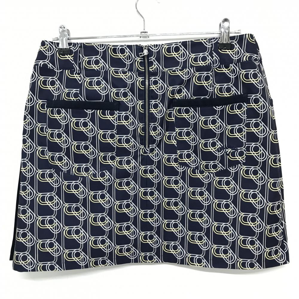 【超美品】キャロウェイ スカート ネイビー×ライトイエロー×グレー系 柄 サイドプリーツ レディース LL ゴルフウェア Callaway