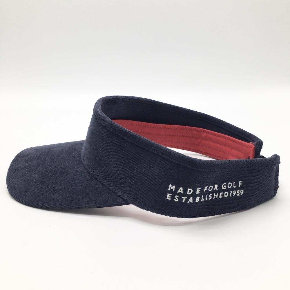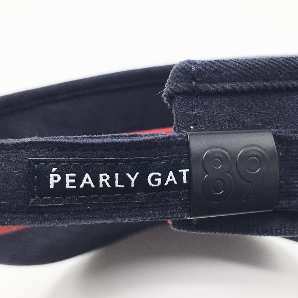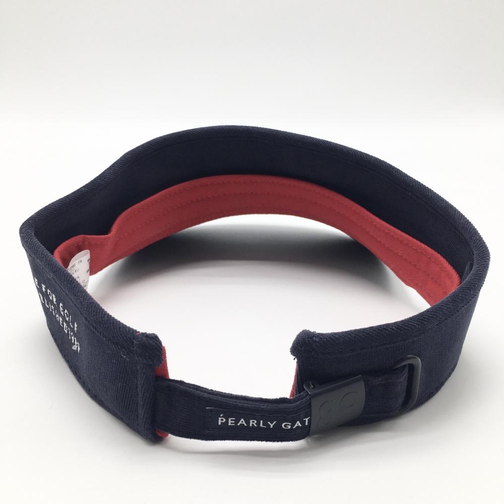 【美品】パーリーゲイツ サンバイザー ネイビー×白 コーデュロイ 立体ロゴ刺しゅう FR ゴルフウェア PEARLY GATES