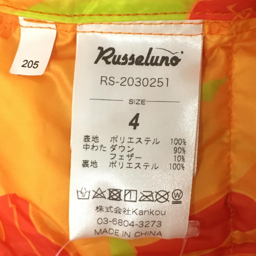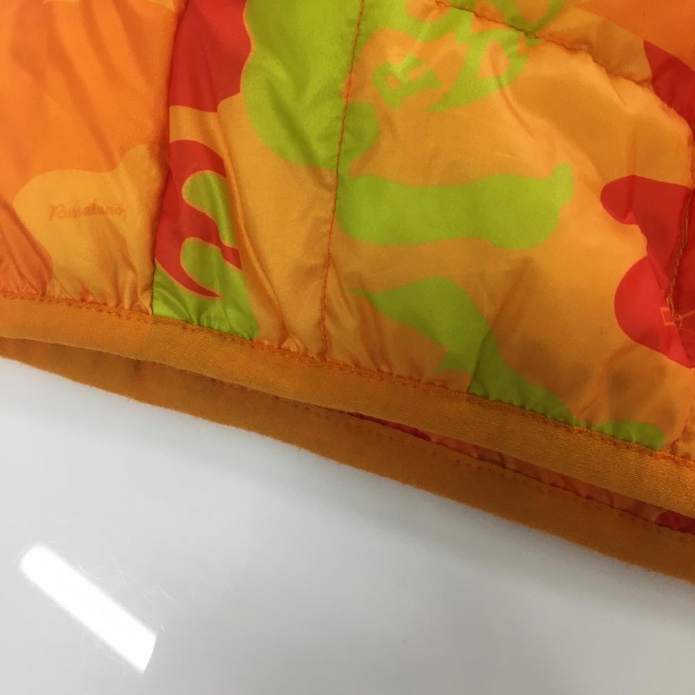 ラッセルノ ダウンベスト オレンジ×ライトグリーン 総柄 ルチャマスク TAION メンズ 4(M) ゴルフウェア RUSSELUNO