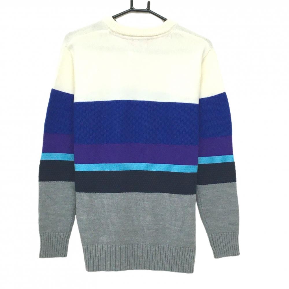 【美品】ニューバランスゴルフ セーター グレー×ブルー×白 ロゴ刺しゅう ニット メンズ 5(L) ゴルフウェア New Balance