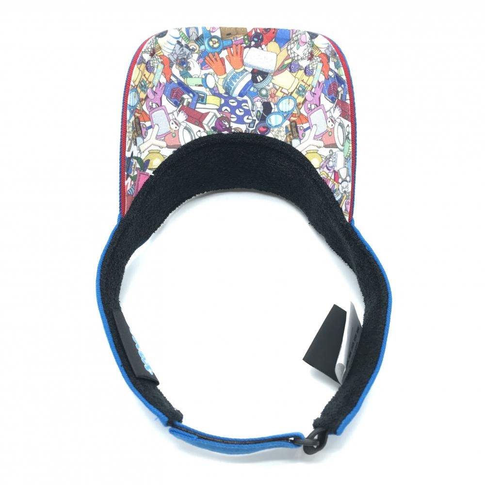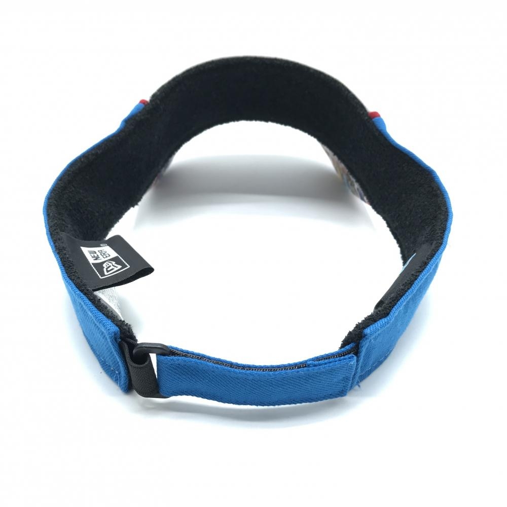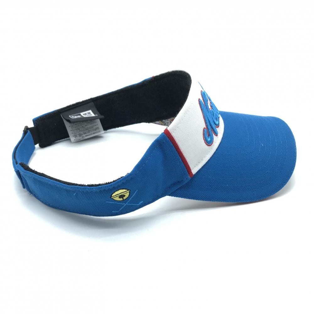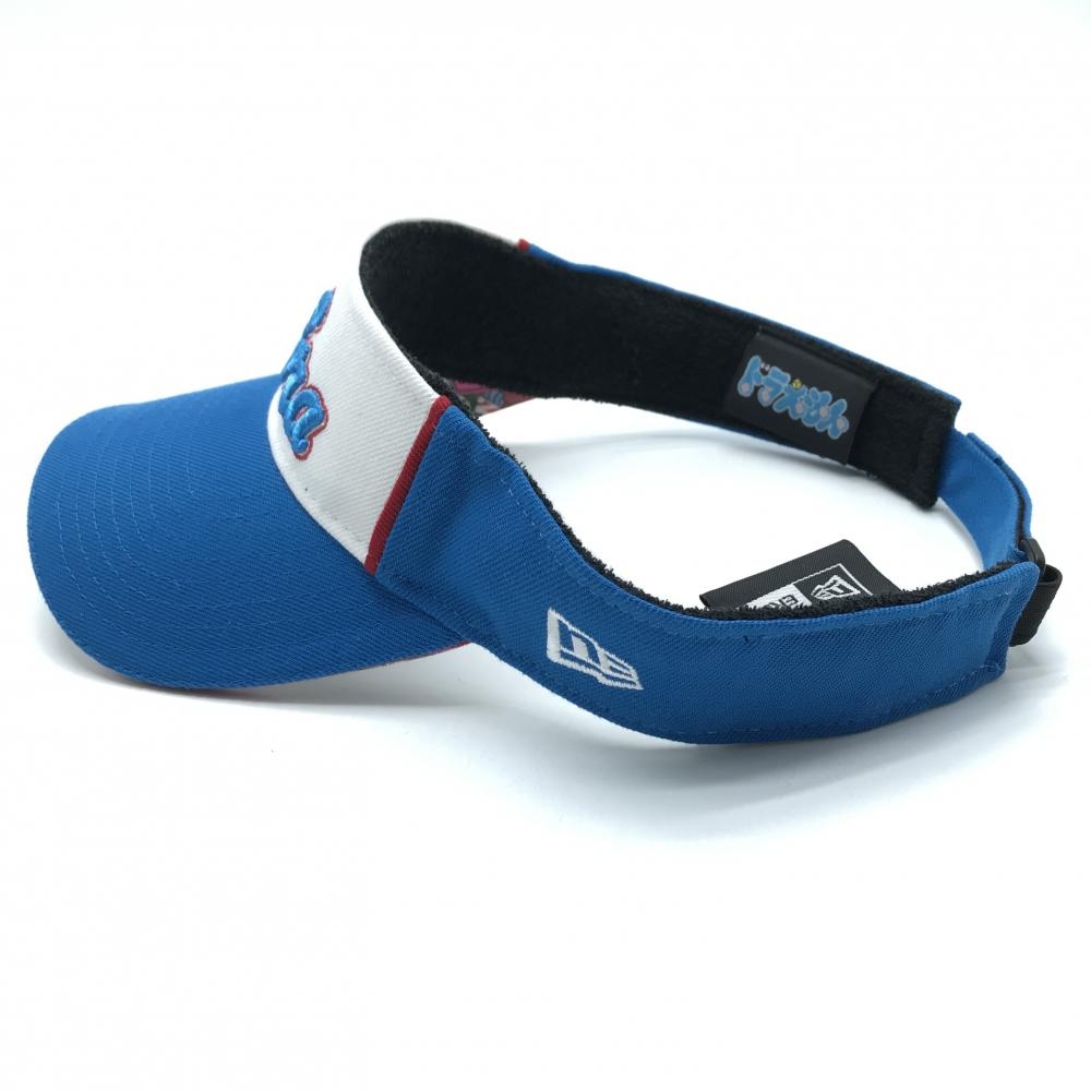 【超美品】ニューエラ×ドラえもん サンバイザー ブルー×白 立体ロゴ つば裏総柄 ゴルフウェア New Era