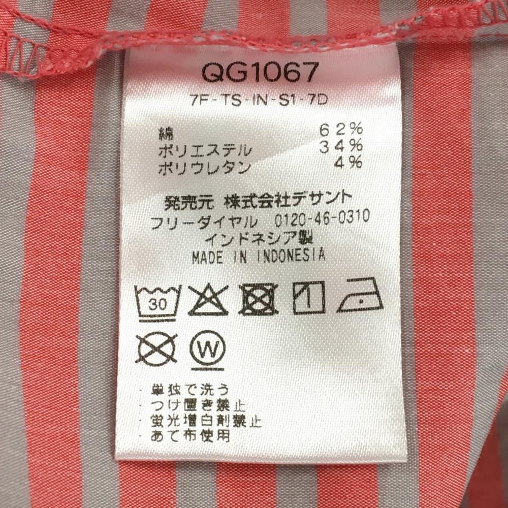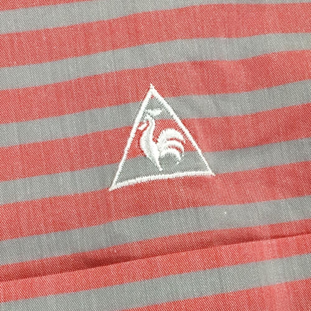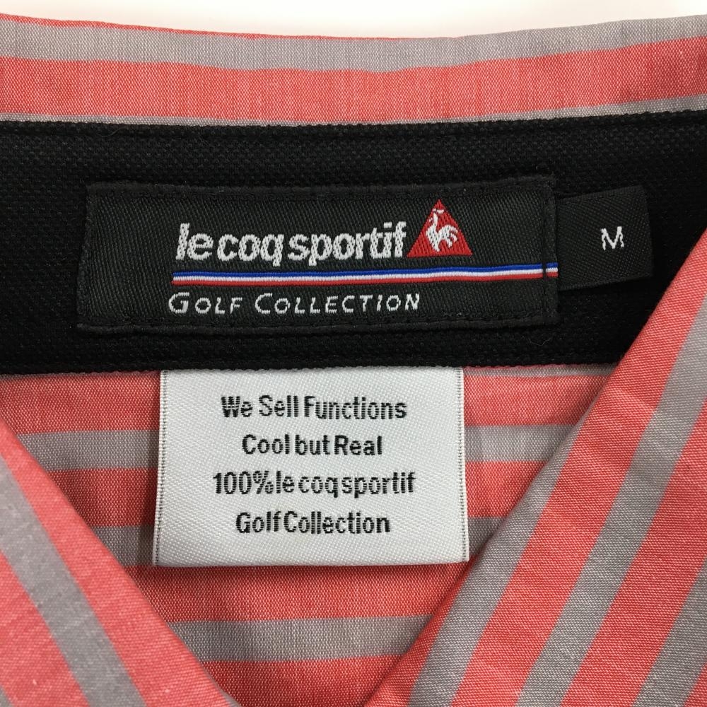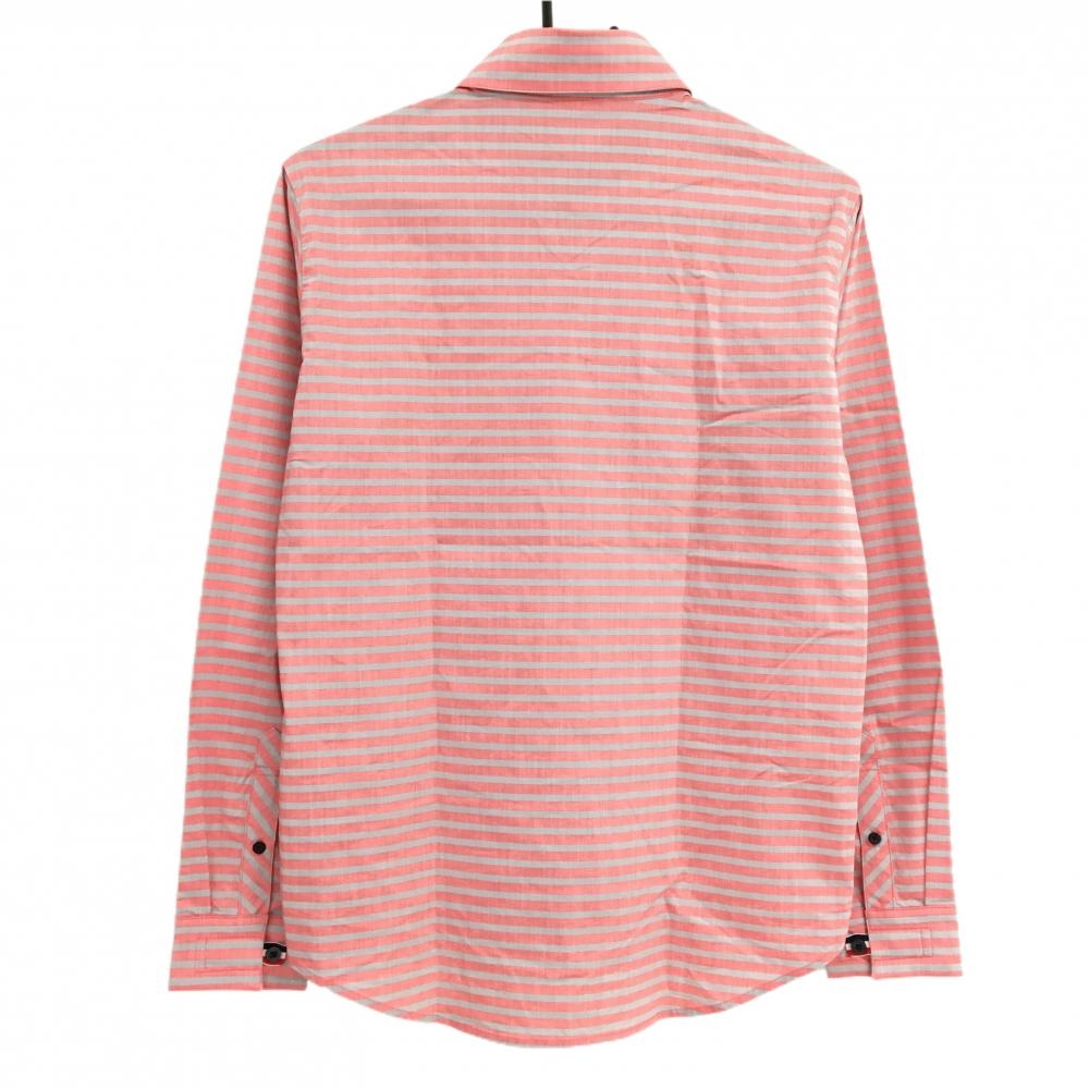【超美品】ルコックゴルフ 長袖シャツ ピンク×ライトグレー ボーダー コットン混 ボタンダウン メンズ M ゴルフウェア le coq sportif