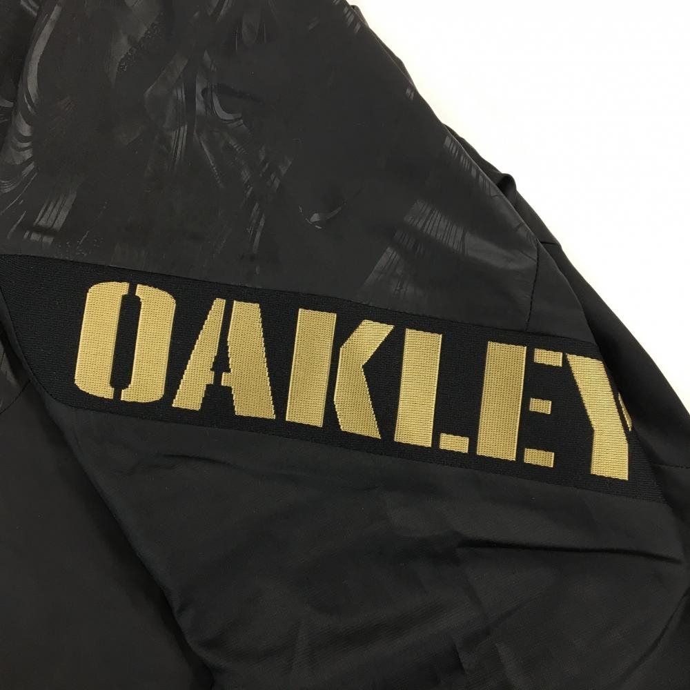 【美品】オークリー ジャケット 黒 一部総柄地模様 ロゴゴールド 裏地付 メンズ L ゴルフウェア Oakley