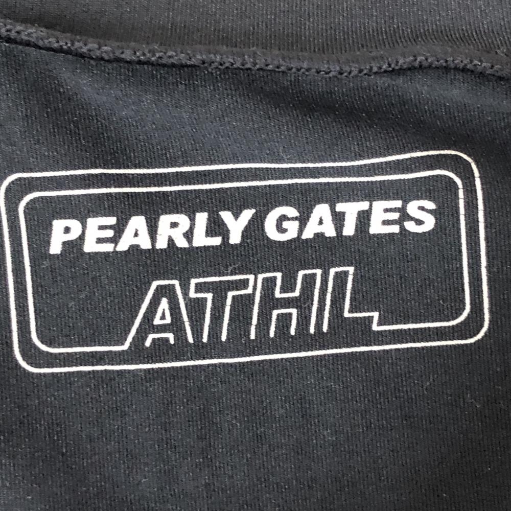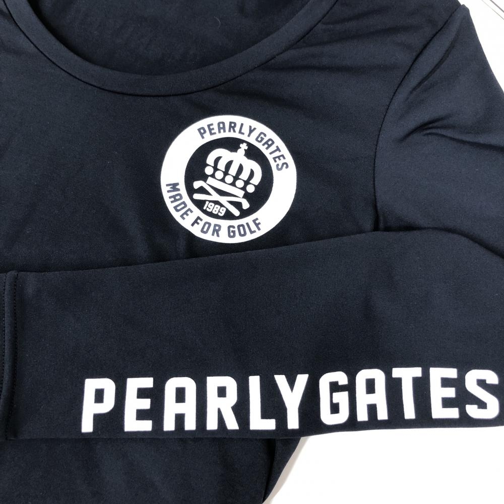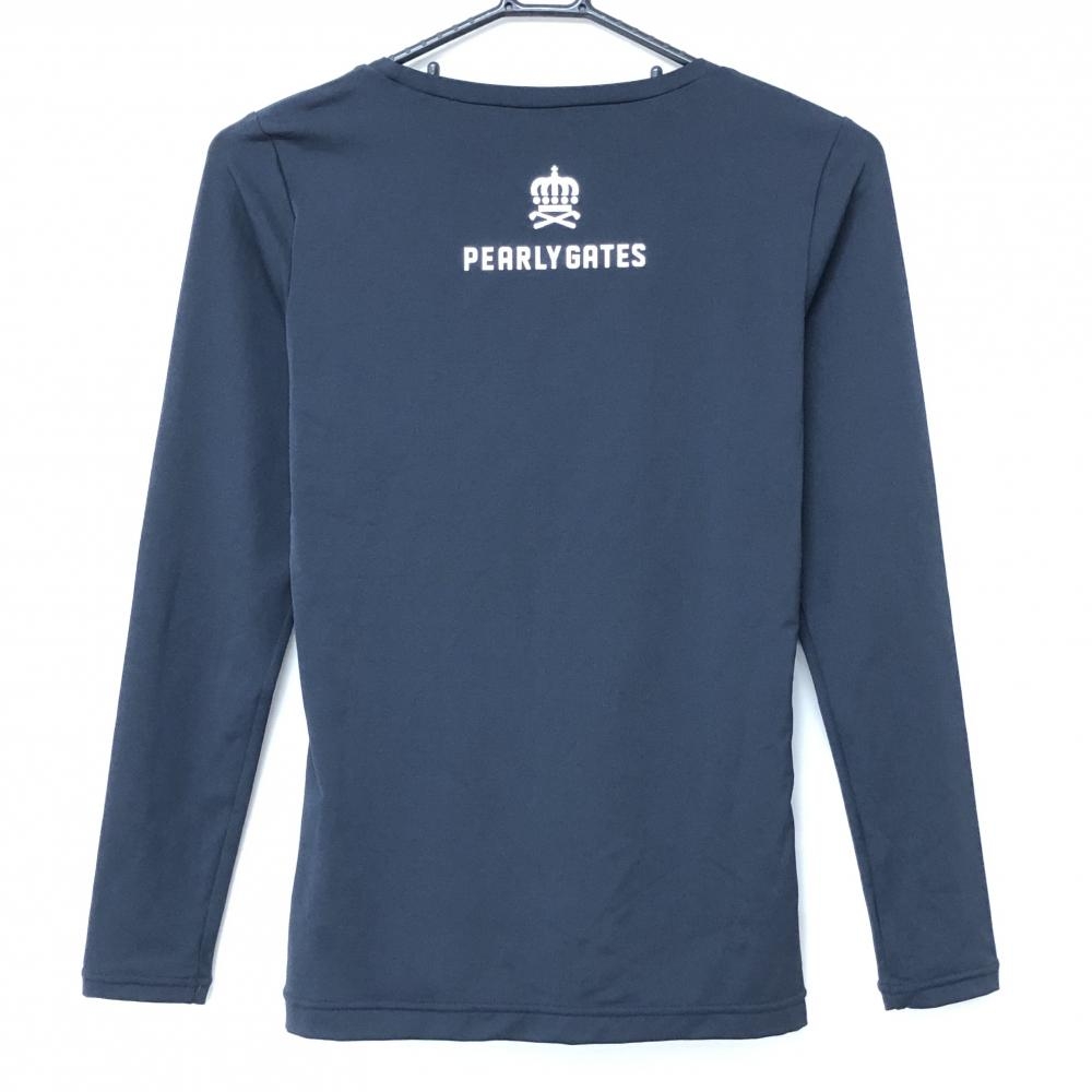 【美品】パーリーゲイツ インナーシャツ ネイビー×白 ストレッチ 内側ブランドプリント割れ レディース 1(M) ゴルフウェア PEARLY GATES