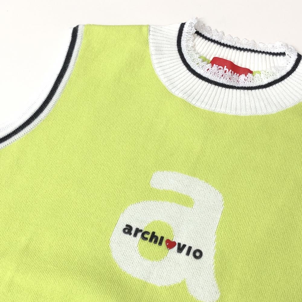【超美品】アルチビオ ニットベスト ライトグリーン×白 背面メッシュ レディース 36(S) ゴルフウェア archivio